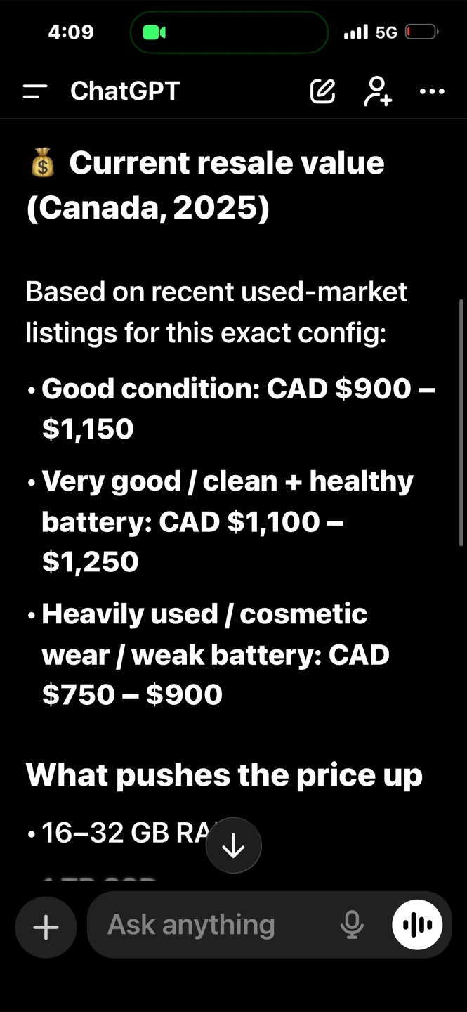 as yall can clealy see ChatGPT says $1,100 - $1,250