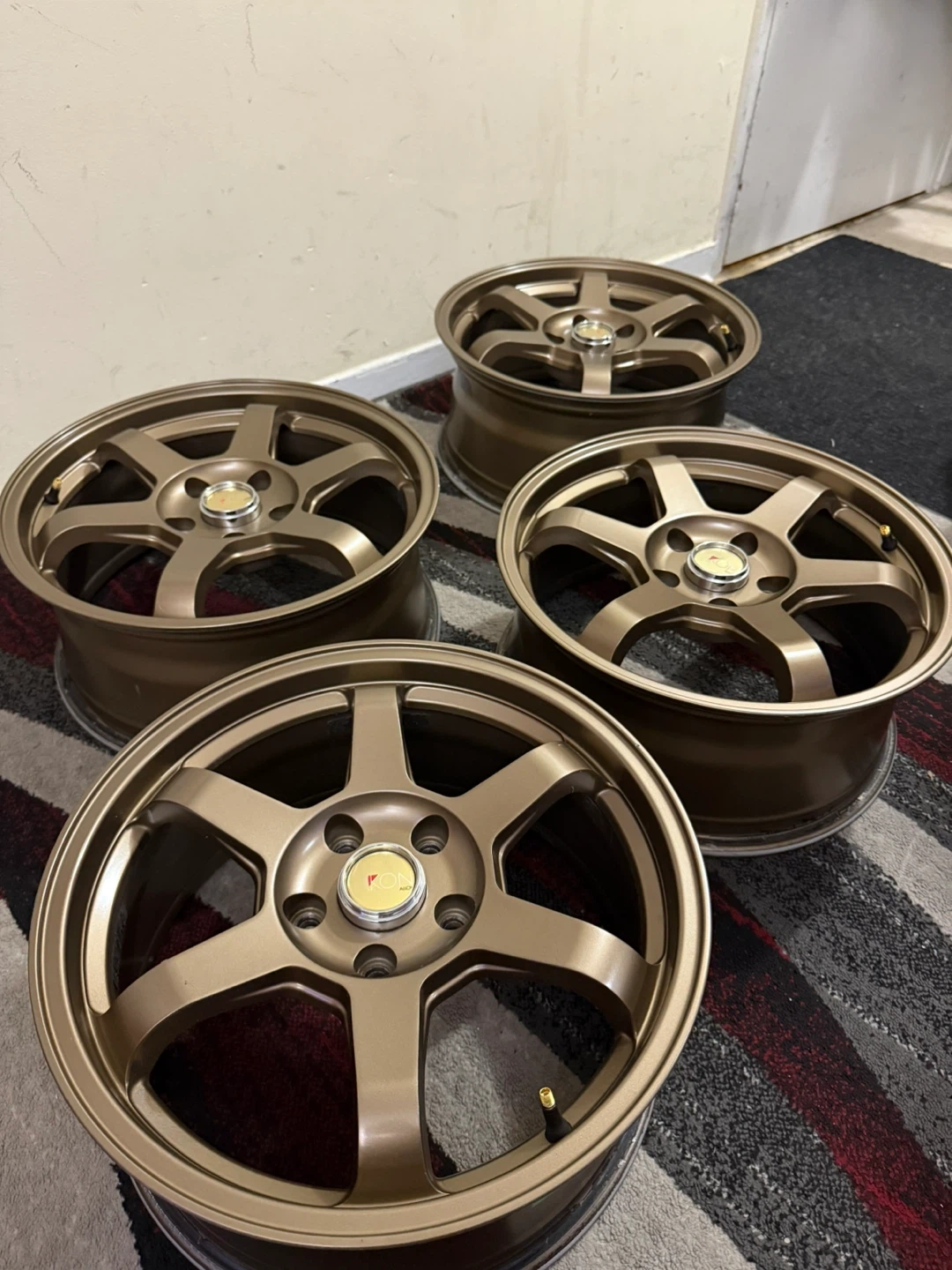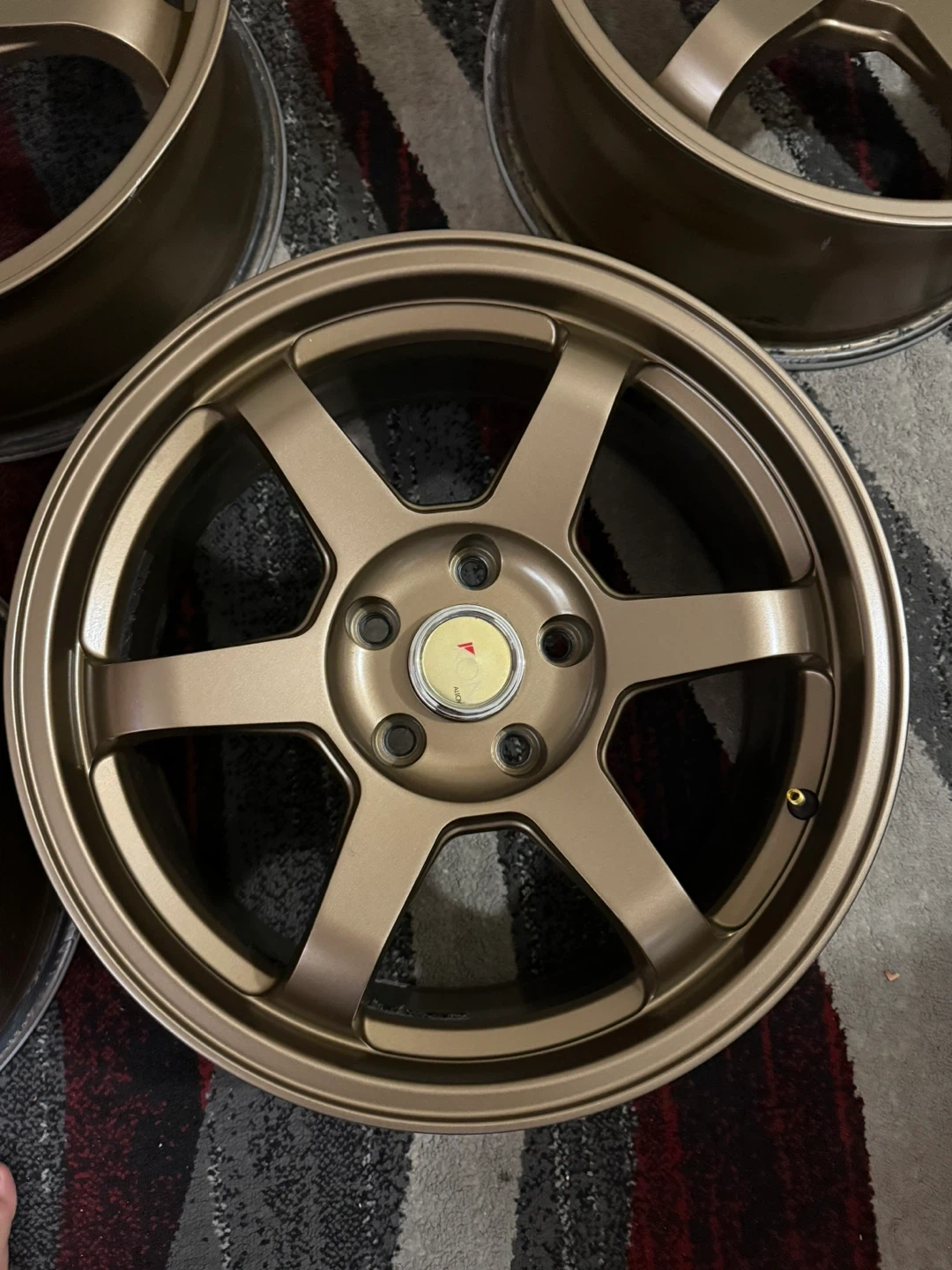 Selling used T37 size 17X7.5 bolt pattern (5x114). Still in good conditions. Has some bends on the side of some wheel as you see in photos. But its not really big issue .
