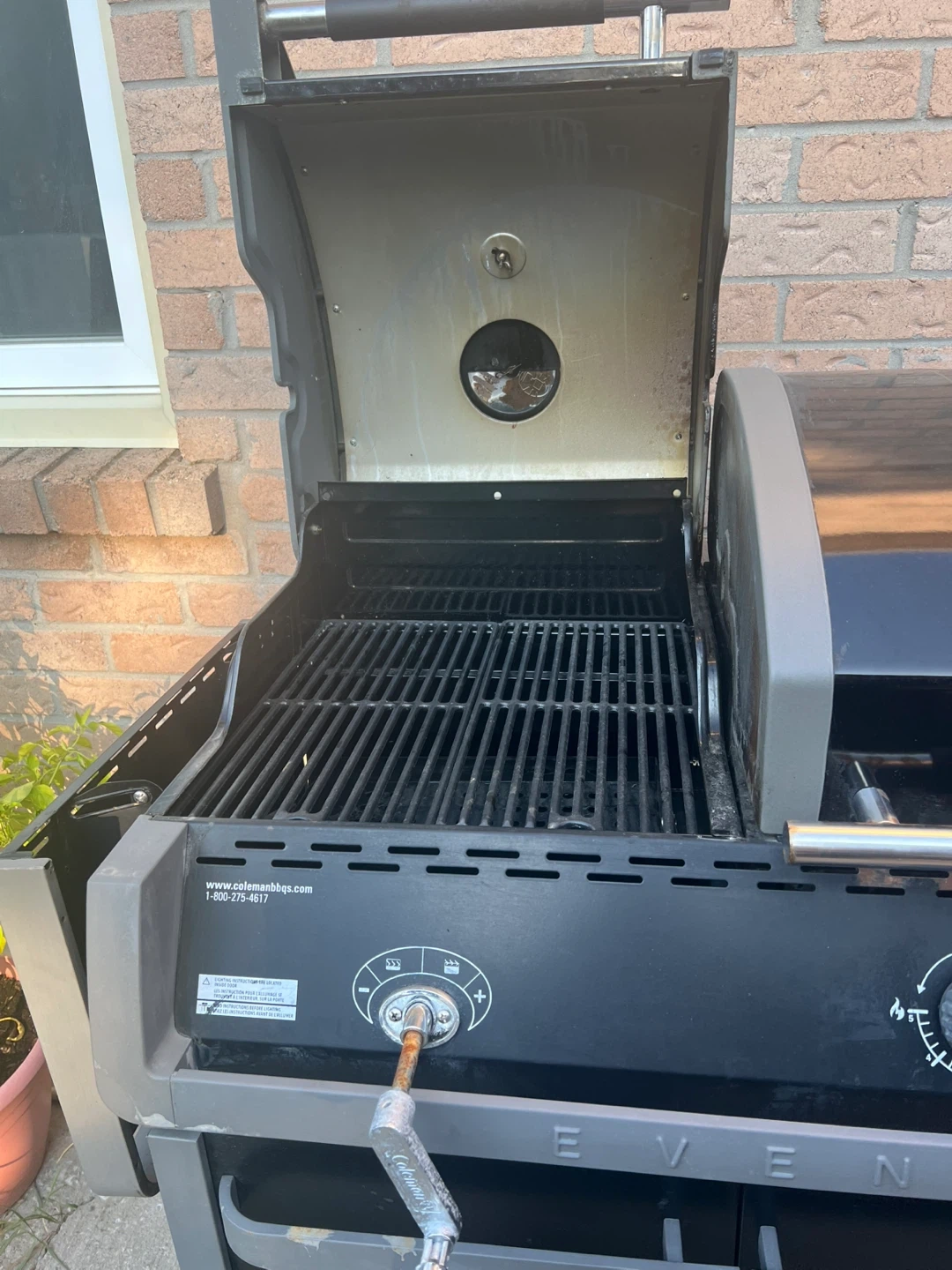Selling a Coleman Evenheat BBQ grill. It has some signs of use, as shown in the photos. Also has charcoal section in it. Never used the charcoal side . Perfect for your summer barbecues!