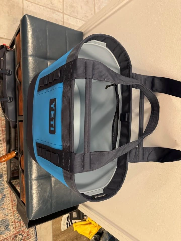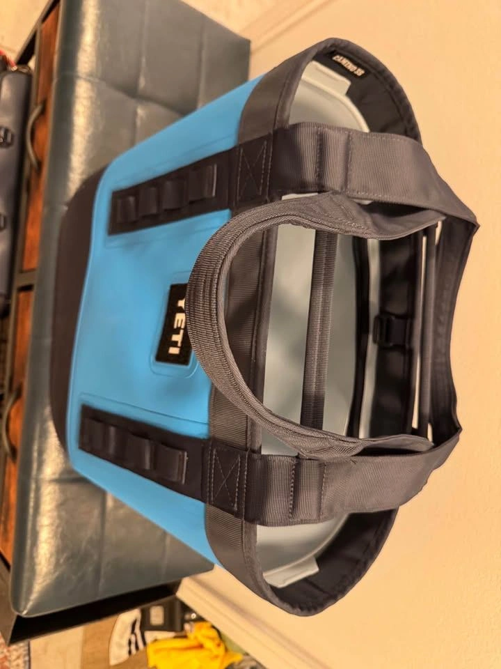 This is not your average tote. It is fully waterproof, puncture-resistant, and built with YETI’s ThickSkin shell, meaning it can handle rough environments like boats, campsites, job sites, or everyday hauling without wearing down.