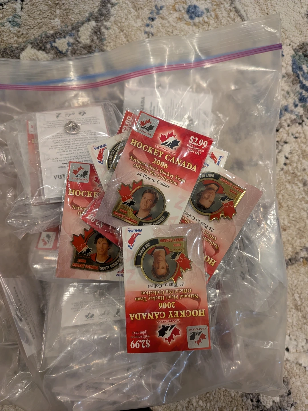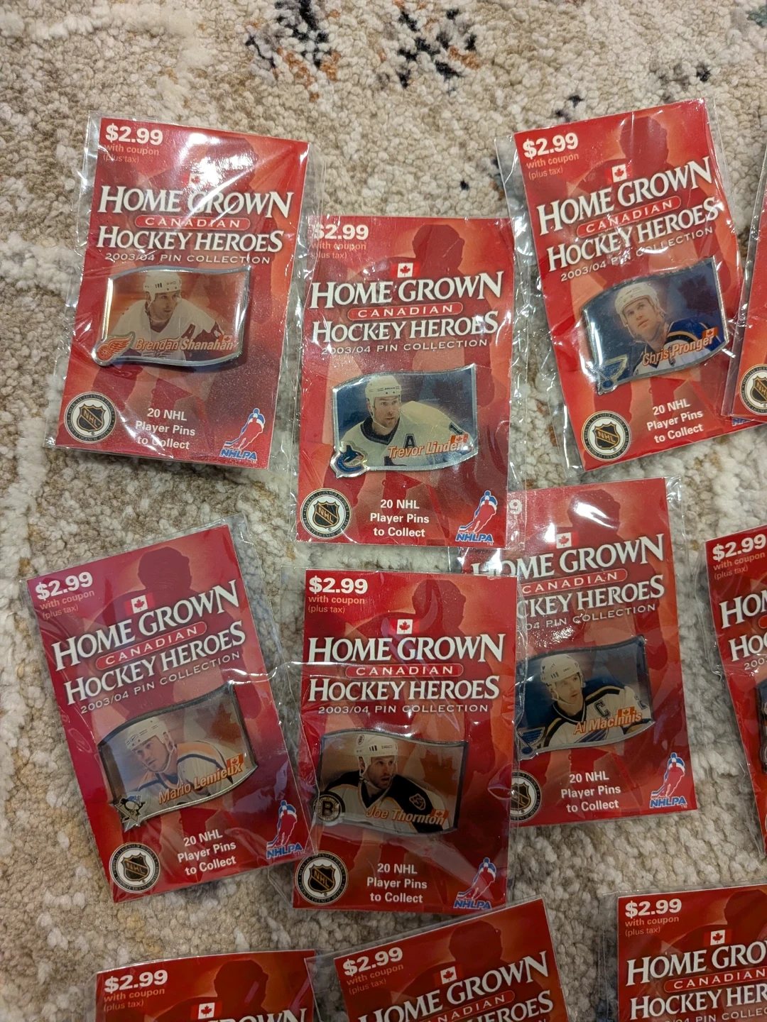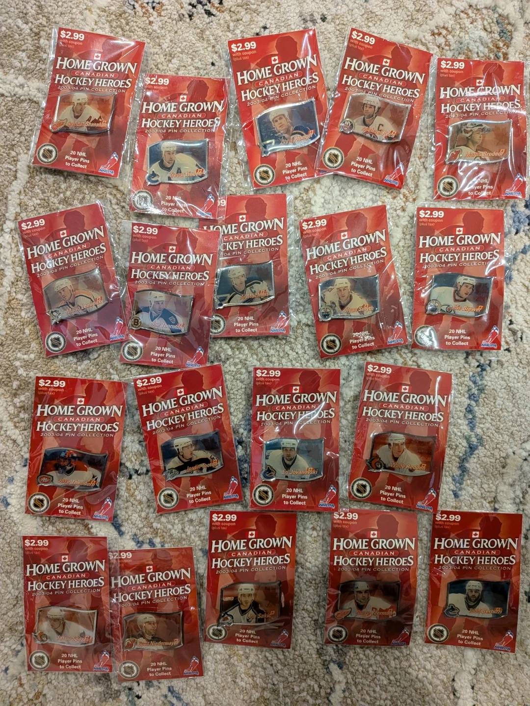 Selling Home Grown Canadian Hockey Heroes 2003/04 Pin Collection pins. They come with a coupon and were originally $2.99 plus tax.