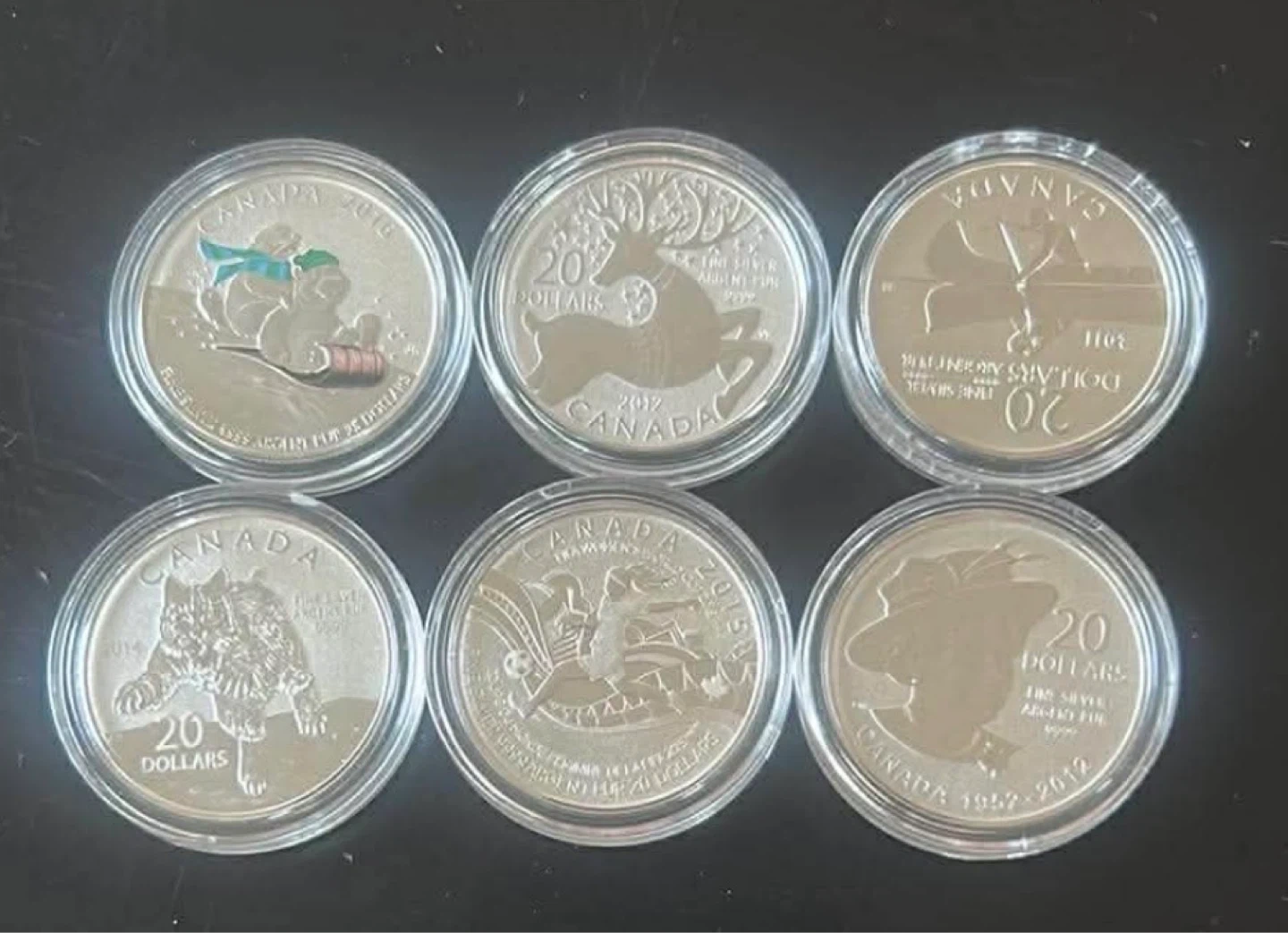 All brand new in mint condition come in capsules different years and designs some are very rare made by the Royal Canadian mint. Pure silver 20 for 20$ 1/4 oz