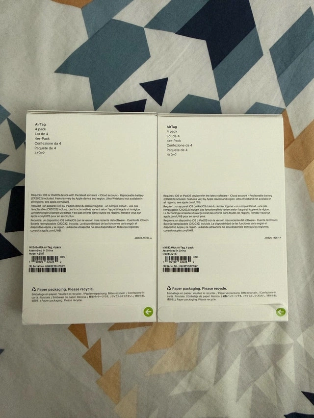 Keep track of your items with a set of four brand new Apple AirTags, each leveraging Bluetooth for accurate location tracking! Never lose your valuables again with these simple to use devices. Precision Finding with Ultra Wideband technology. Simple one-tap setup instantly connects AirTag with your iPhone or iPad. The Find My network with hundreds of millions of Apple devices helps you track down AirTag. Location data remains private and encrypted every step of the way. Replaceable battery lasts over a year. IP67 water and dust resistant. If the listing is still up, rest assured, the item is available!