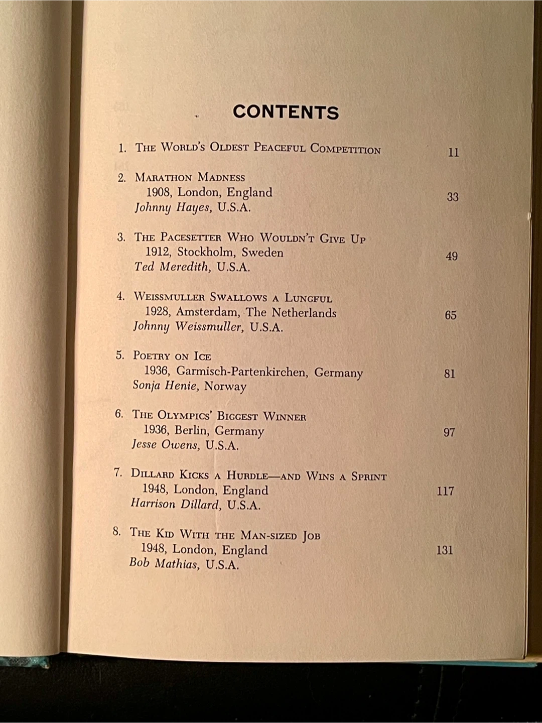 This hardcover book, Olympic Thrills, covers thrilling moments in Olympic history. It features stories like the 1956 Melbourne Olympics upset and the 1960 Squaw Valley ice hockey team's win. Joseph N. Bell is the author. Published 1966. 190 pages. Former library book in good condition with clean pages except for typical library markings.