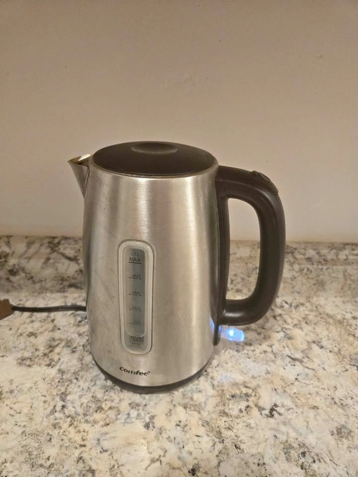 Fast-boiling electric kettle, perfect for tea, coffee, or hot water.