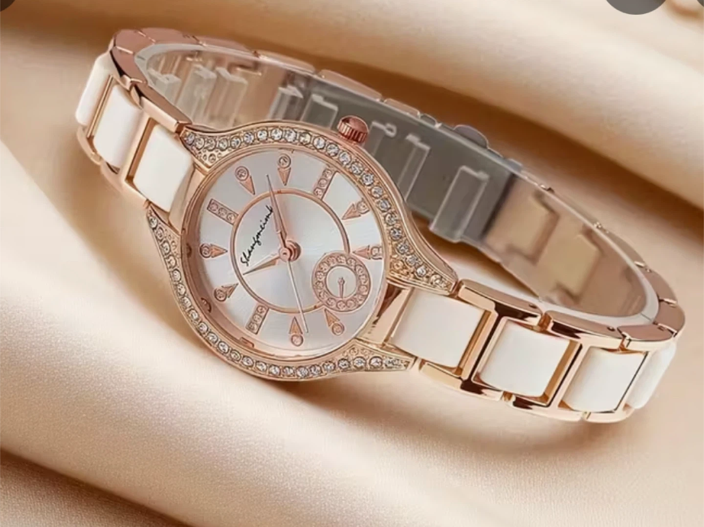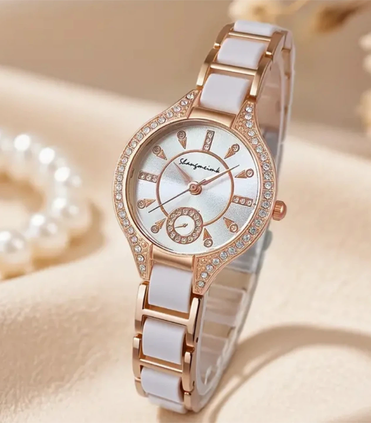 Selling a beautiful Shangmeish ladies watch in rose gold and white. It has a lovely, elegant design with sparkling accents. Perfect for adding a touch of glamour to your everyday look!