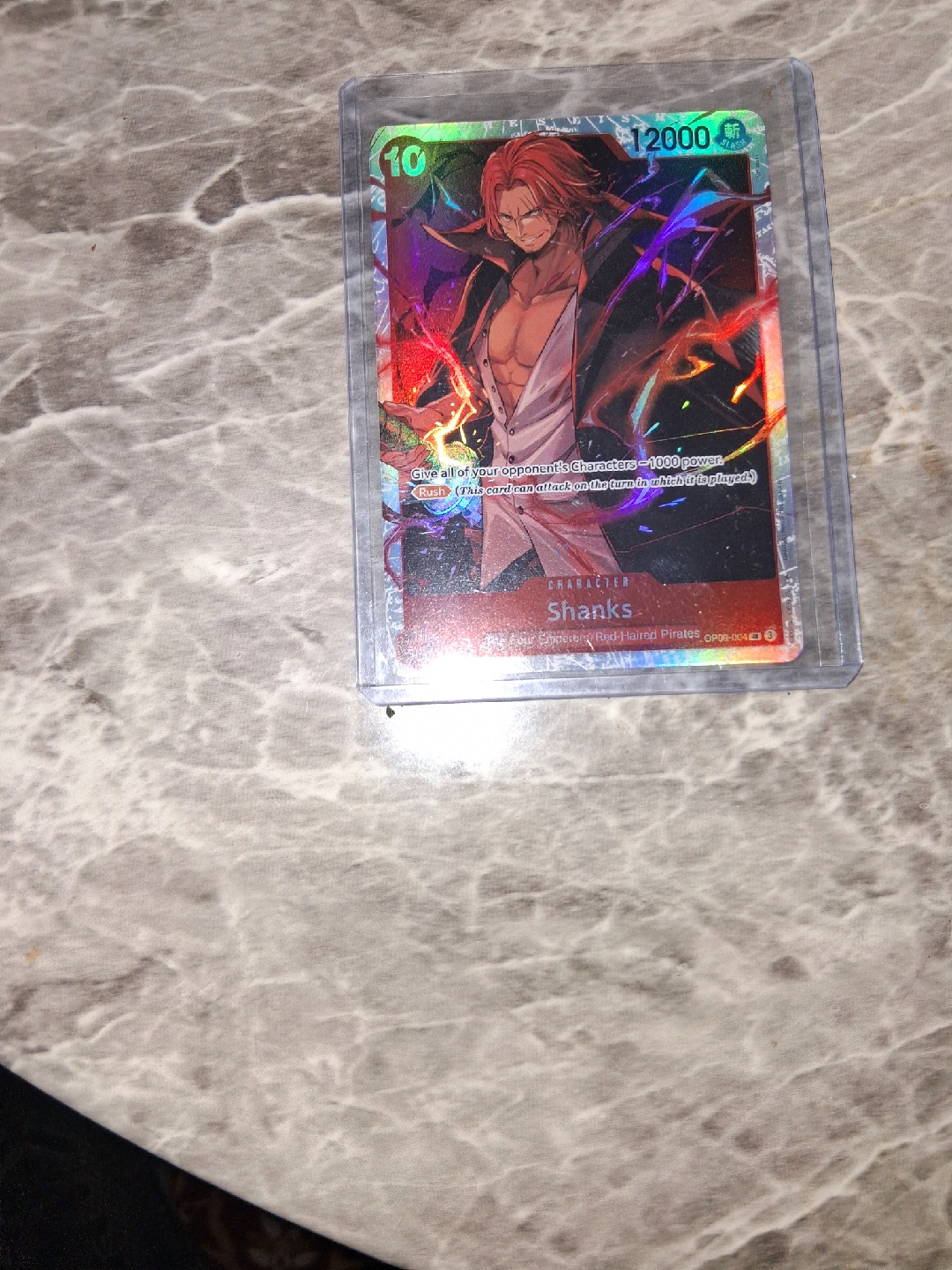 65Selling a Shanks One Piece card. It gives all of your opponent's characters -1000 power and has Rush, meaning this card can attack on the turn in which it is played!