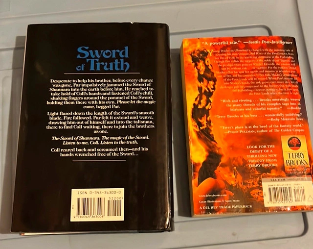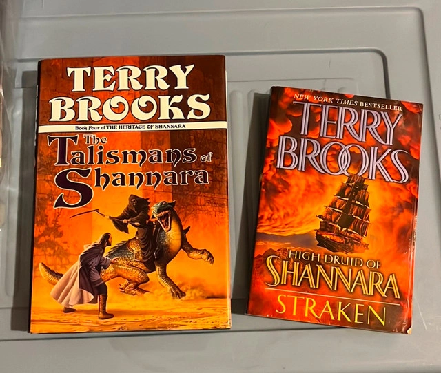 Pair of two Terry Brooks fantasy novels. Fiction books. The Talismans of Shannara book four of The Heritage of Shannara (hardcover) and High Druid of Shannara Straken (softcover with some water marks inside). Epic fantasy where the humble heroes set off to save the world from evil. Both books read great on their own, although I would recommend reading the rest of the series eventually. Terry Brooks is one of the greats. Both for $8. Near the Burlington/Oakville border.
