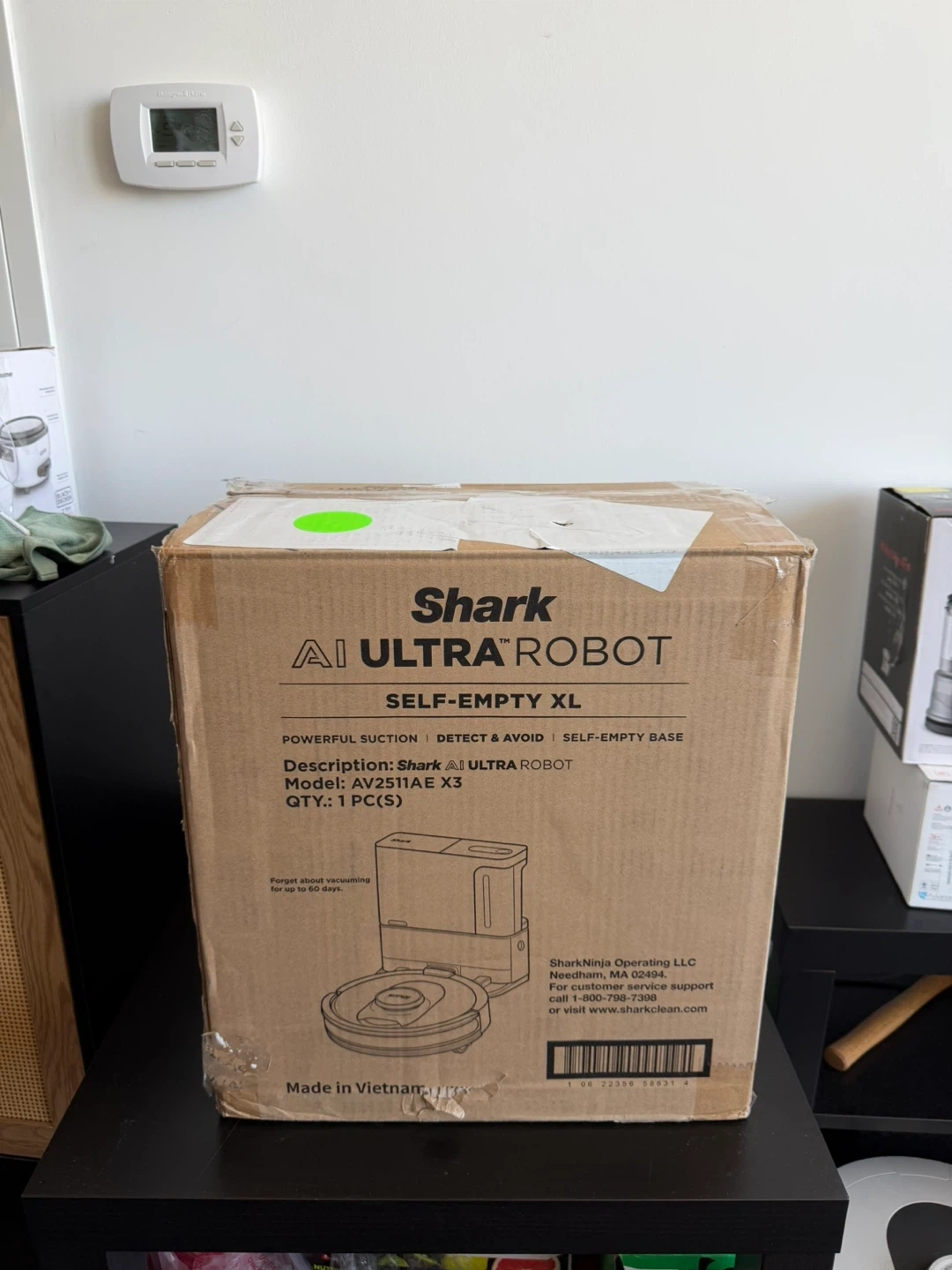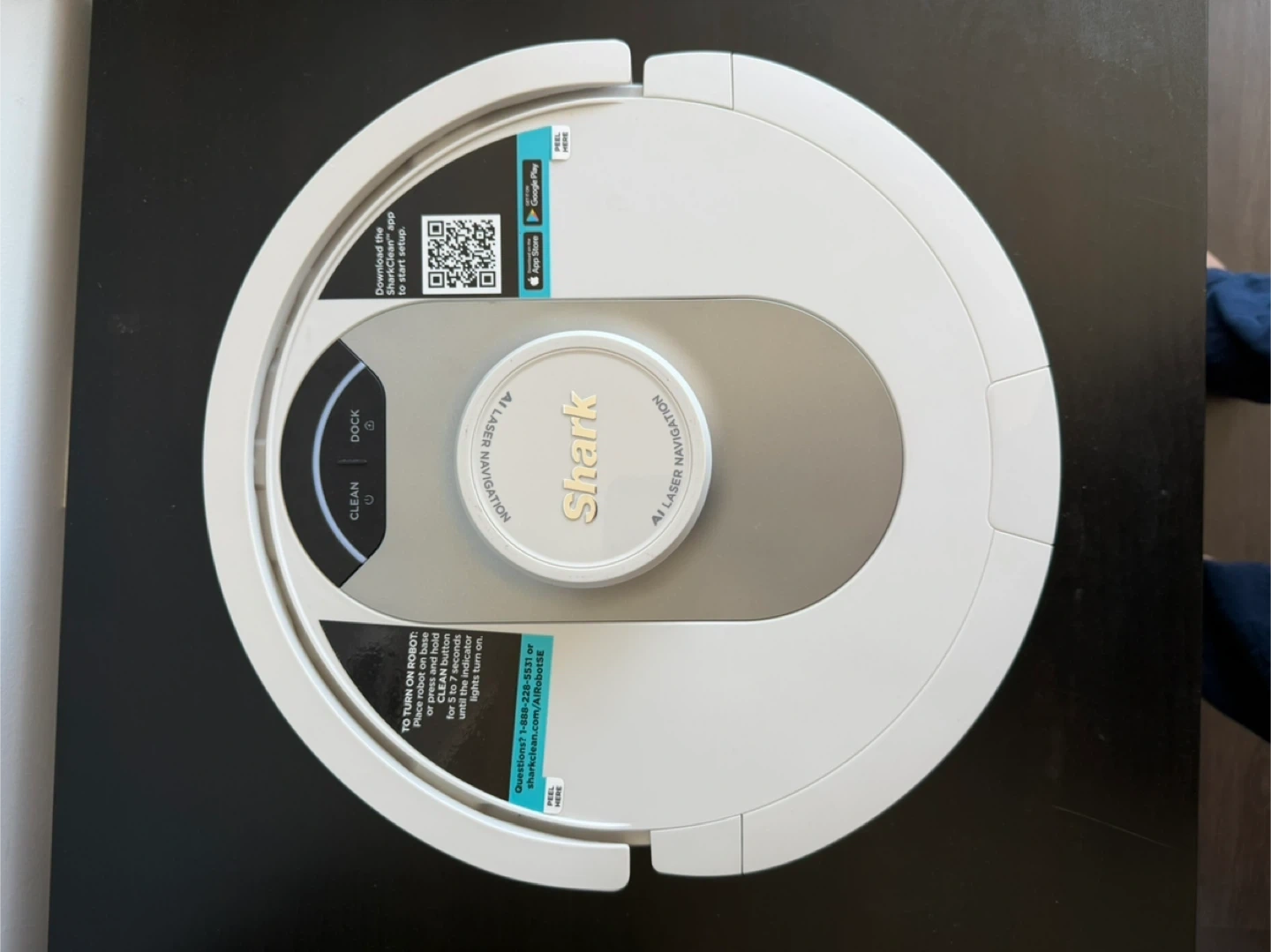 Selling a white Shark AI Laser Navigation Robot Vacuum with self-emptying base, offering powerful, precise cleaning for carpets and hard floors. This smart vacuum uses AI laser mapping for efficient navigation and features a self-emptying dust bin for hassle-free maintenance. Features: - AI Laser Navigation for precise mapping and cleaning - Self-emptying dustbin holds up to 30 days of debris - Dual side brushes and powerful suction for thorough cleaning - Includes charging dock with large capacity waste bin - Smart app control for scheduling and custom cleaning modes - Suitable for pet owners and allergy sufferers Condition: Lightly used and fully functional. Clean, well maintained, and comes with all accessories shown. Pickup: Downtown Toronto Retails for $499 plus taxes.