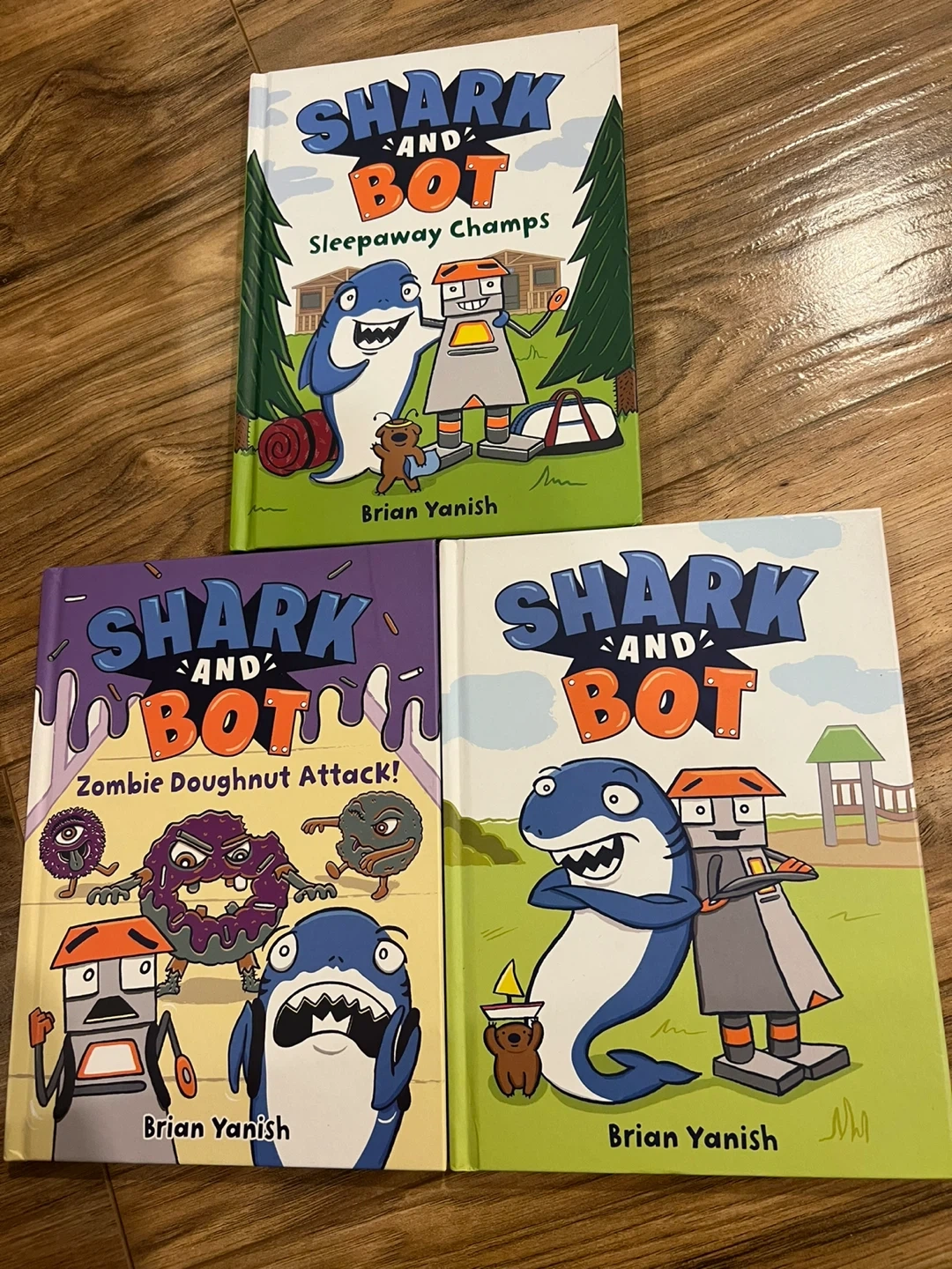 15Selling a set of three Shark and Bot books by Brian Yanish! Titles include Sleepaway Champs and Zombie Doughnut Attack Hard cover Price is for all Pick up in aurora Yonge and Wellington