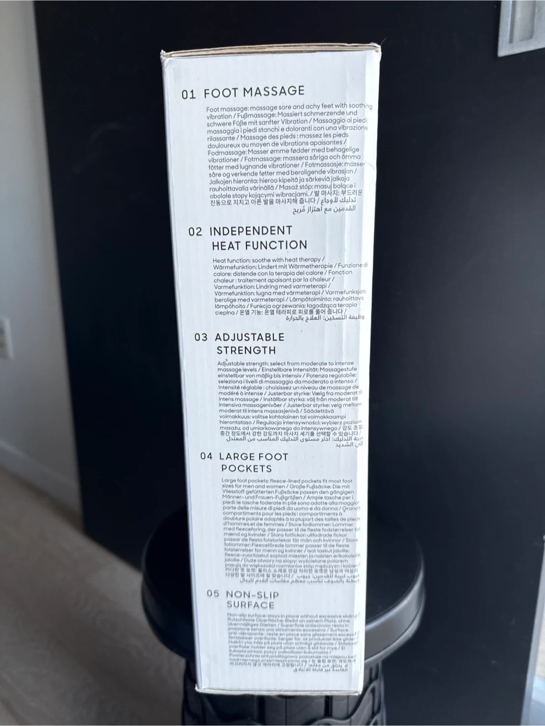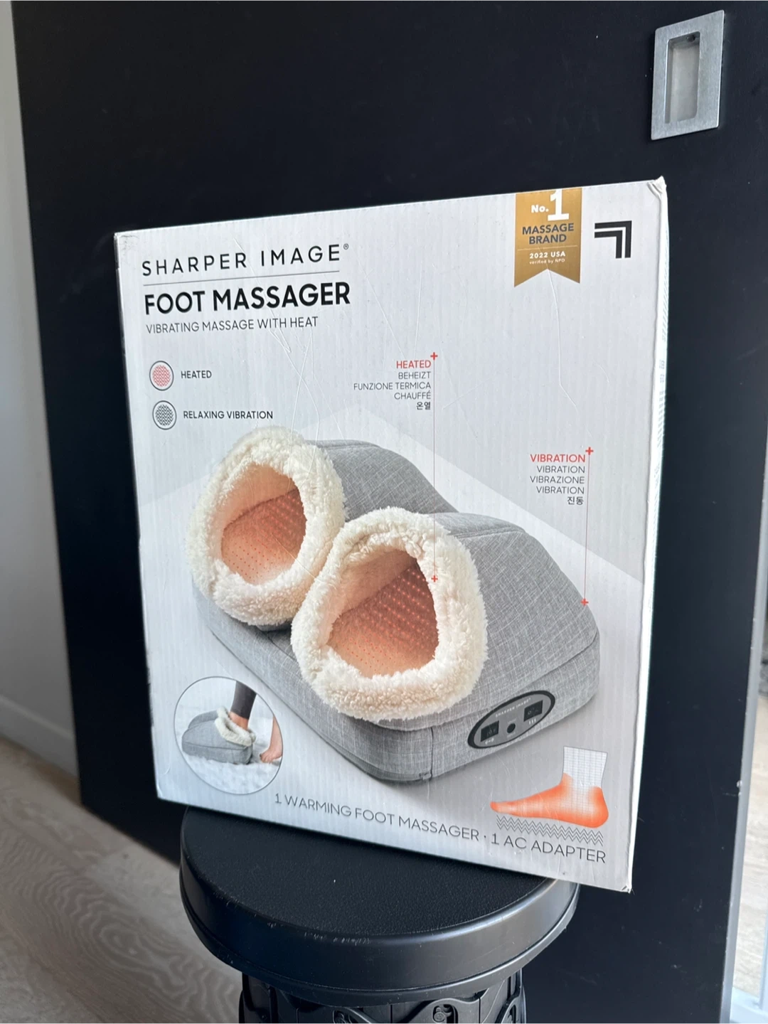 94Get ready to relax with this Sharper Image Foot Massager! It features vibrating massage with heat, offering a heated and relaxing vibration experience. The massager has large foot pockets and a non-slip surface, ensuring comfort and safety. It comes with an AC adapter for easy use. Enjoy foot massage, independent heat function, and adjustable strength all in one device!