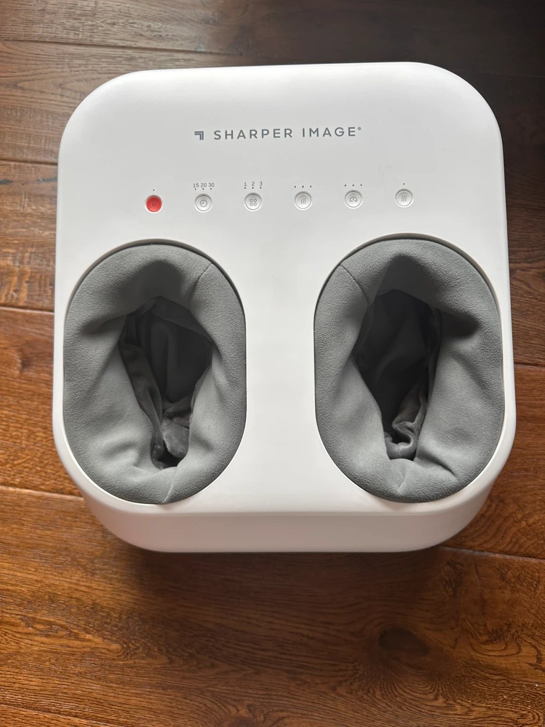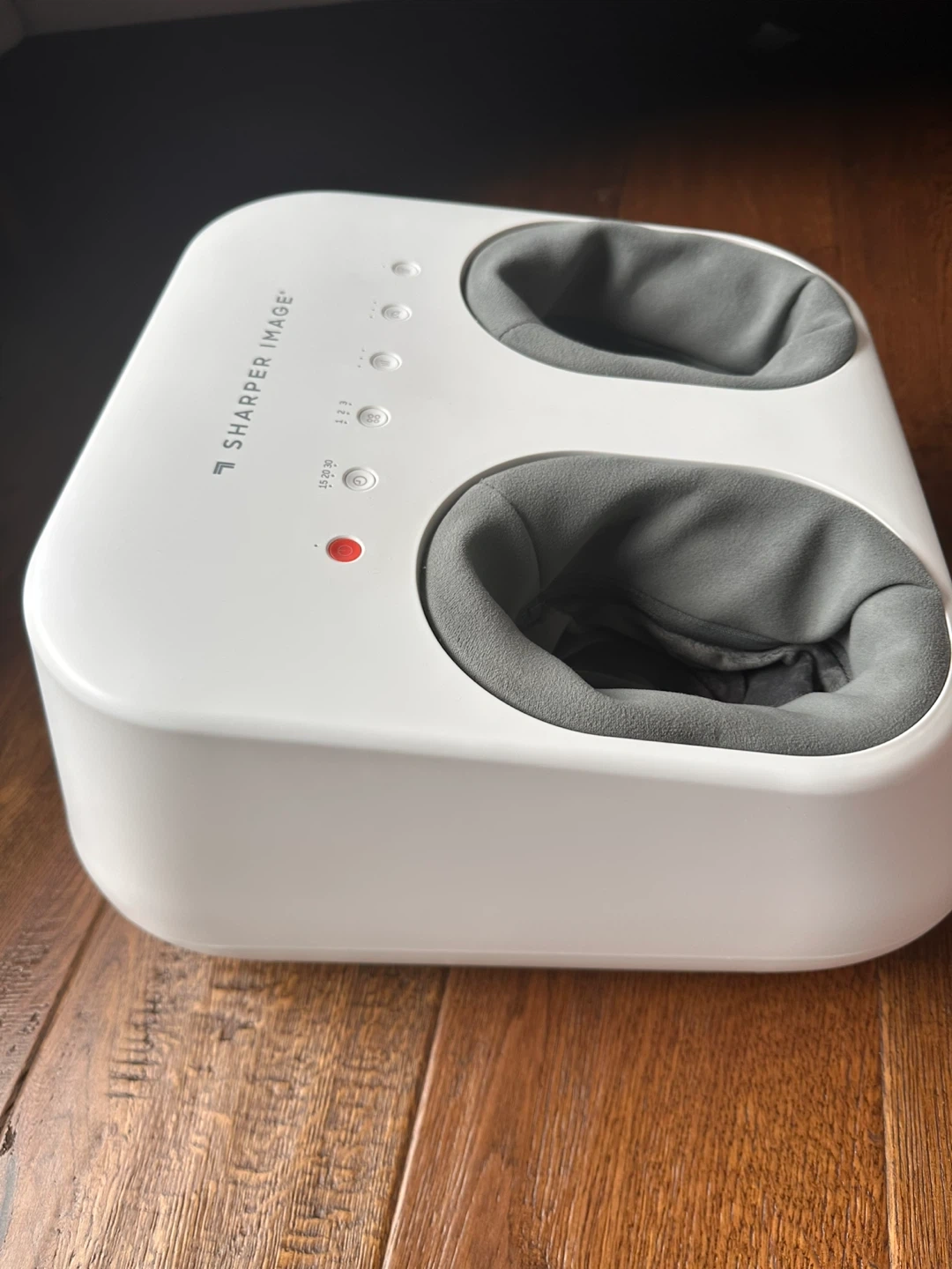 Enjoy a relaxing hand massage with this Sharper Image heated hand massager! It's in great condition and ready to help you unwind after a long day. Perfect for soothing tired feet and promoting circulation.
