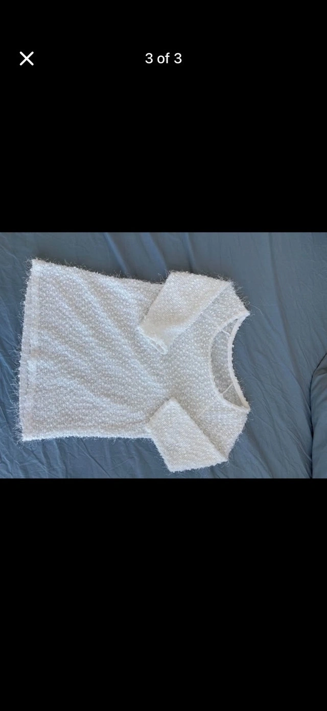 Selling a stylish set of two white long sleeve tops. The first is a ribbed top with a unique square neckline, perfect for a modern look. The second is a fluffy sweater-like material that offers a cozy and chic feel. Both tops are in excellent condition and ready to add a fresh touch to your wardrobe. If the ad is up, they are still available!