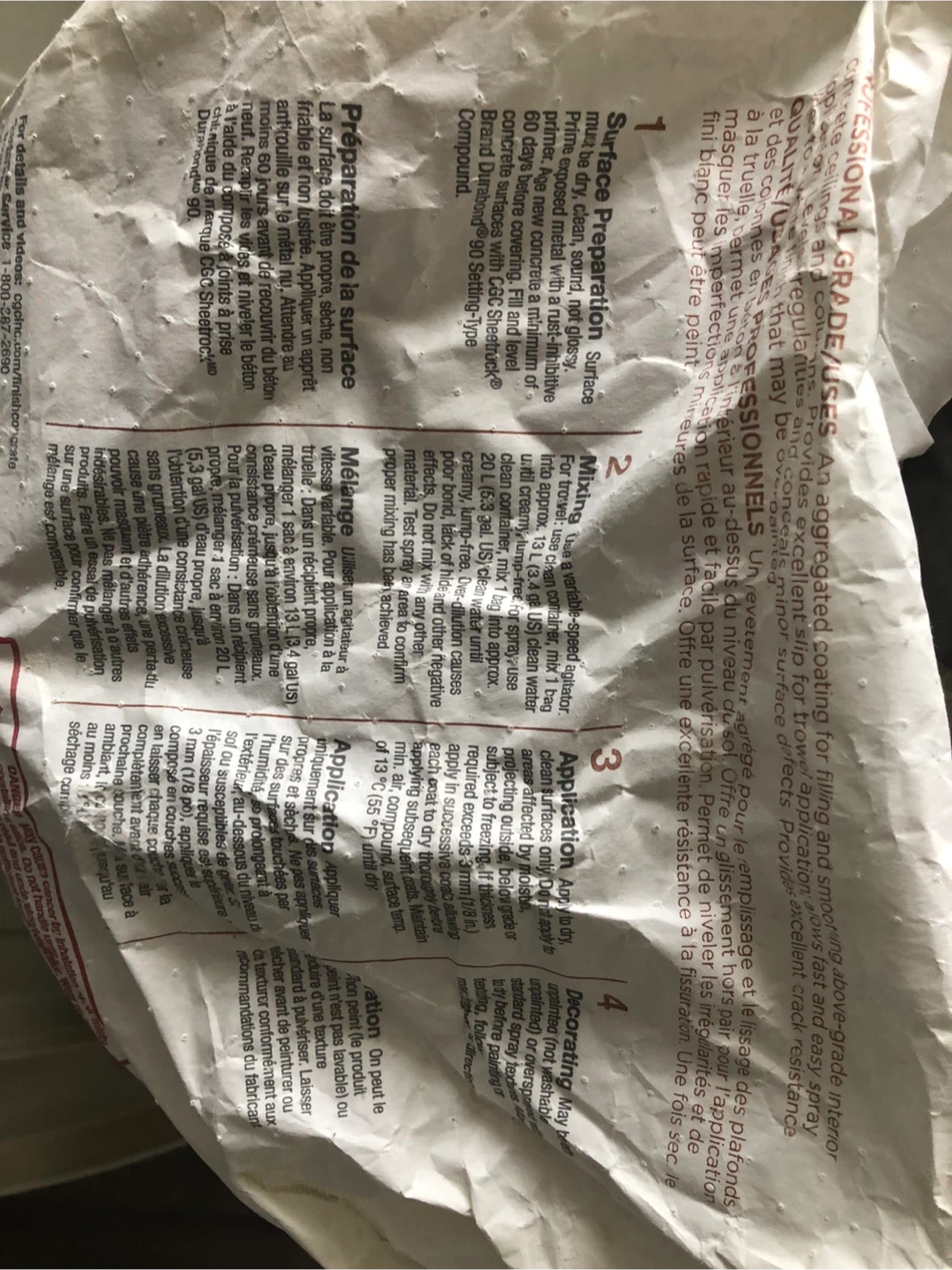99Selling an almost full bag for of Sheetrock Cover Coat leveling compound. It's easy to apply with a trowel or spray and provides a high-strength bond. It's designed to conceal minor surface defects and irregularities, leaving a smooth surface ready for finishing