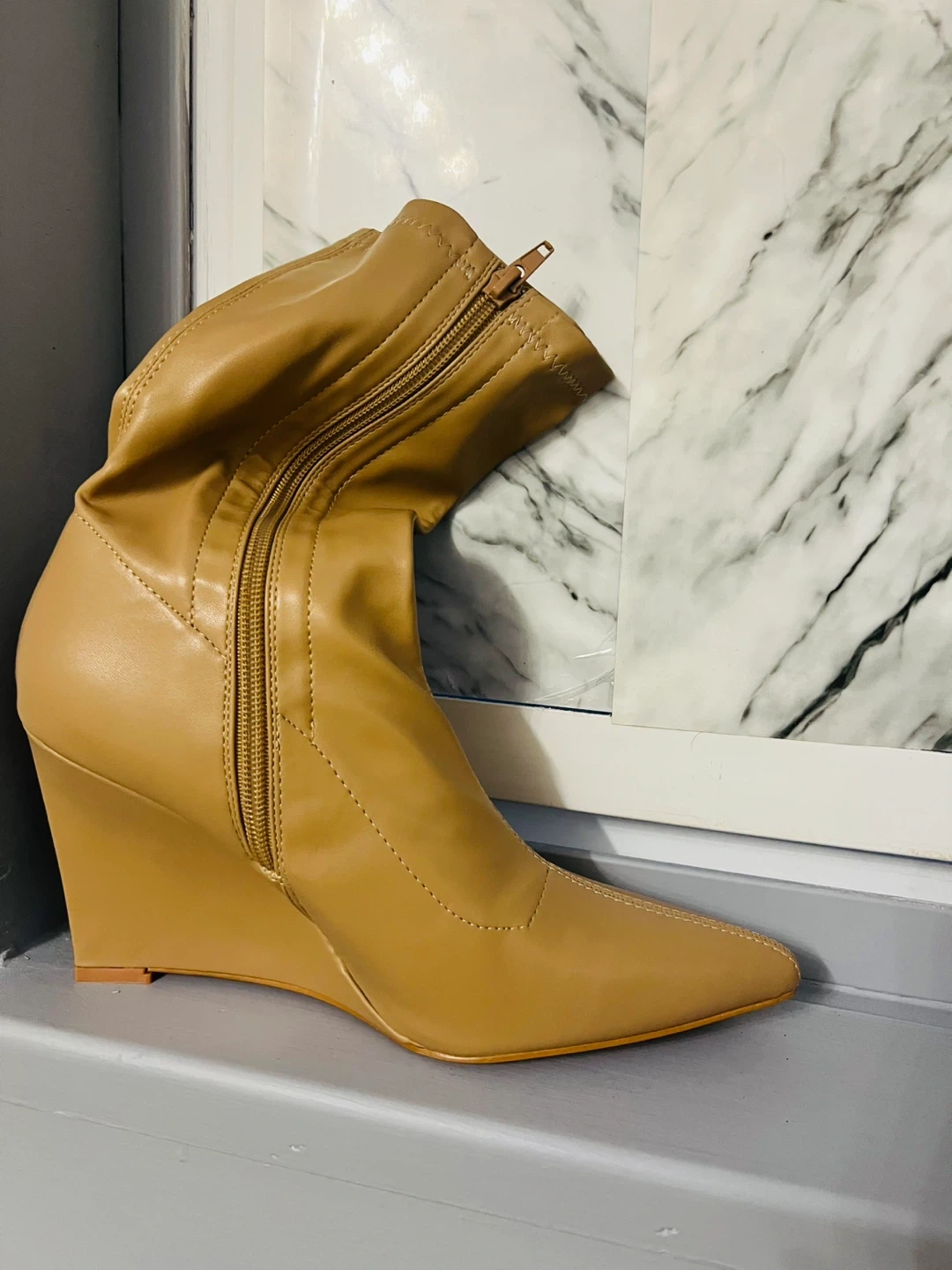 87These stylish Sheila wedge ankle boots are in great condition and ready for a new home! They feature a sleek beige colour and a comfortable wedge heel. Size 40 (approximately US size 10). Perfect for adding a touch of elegance to any outfit