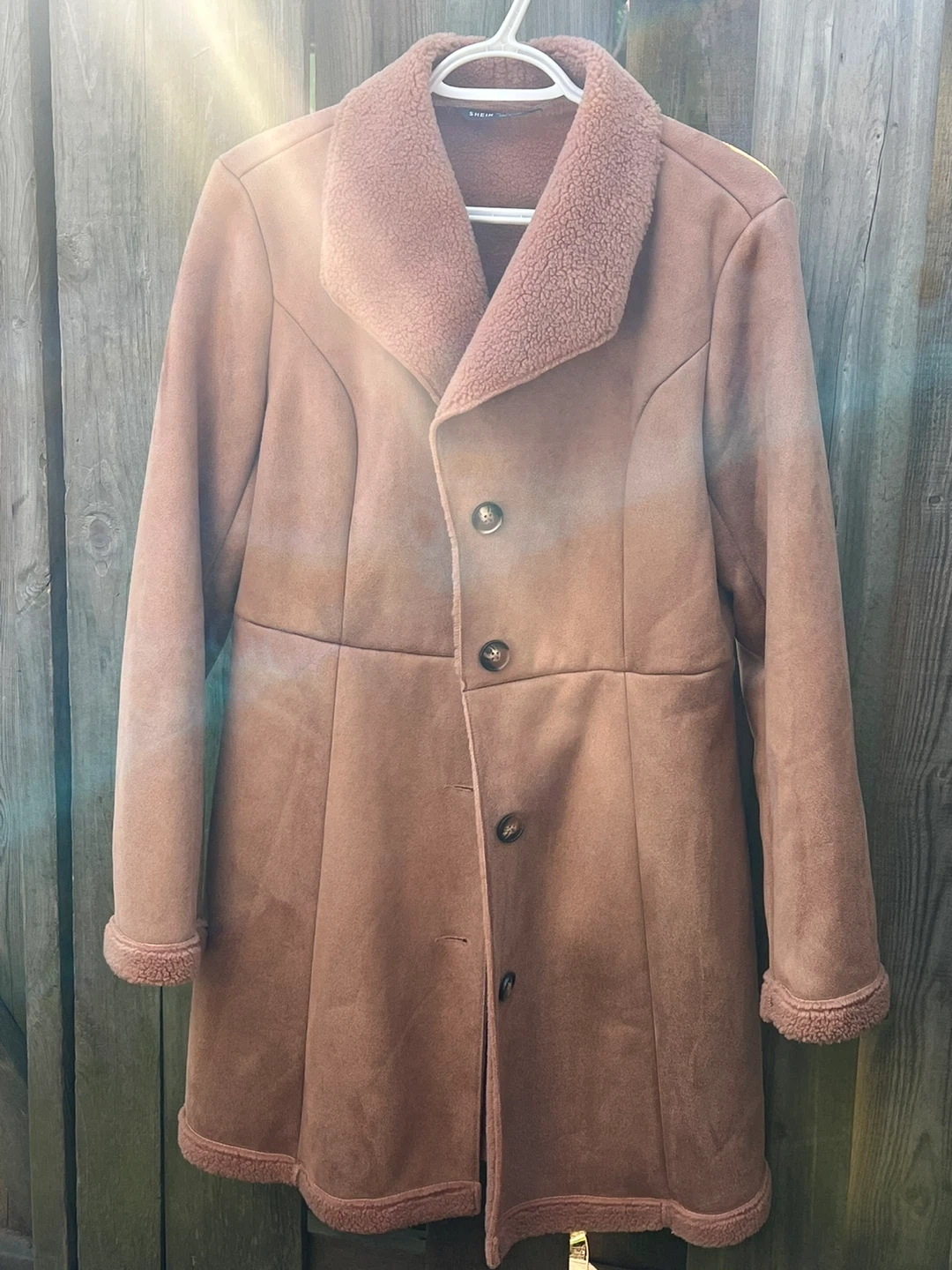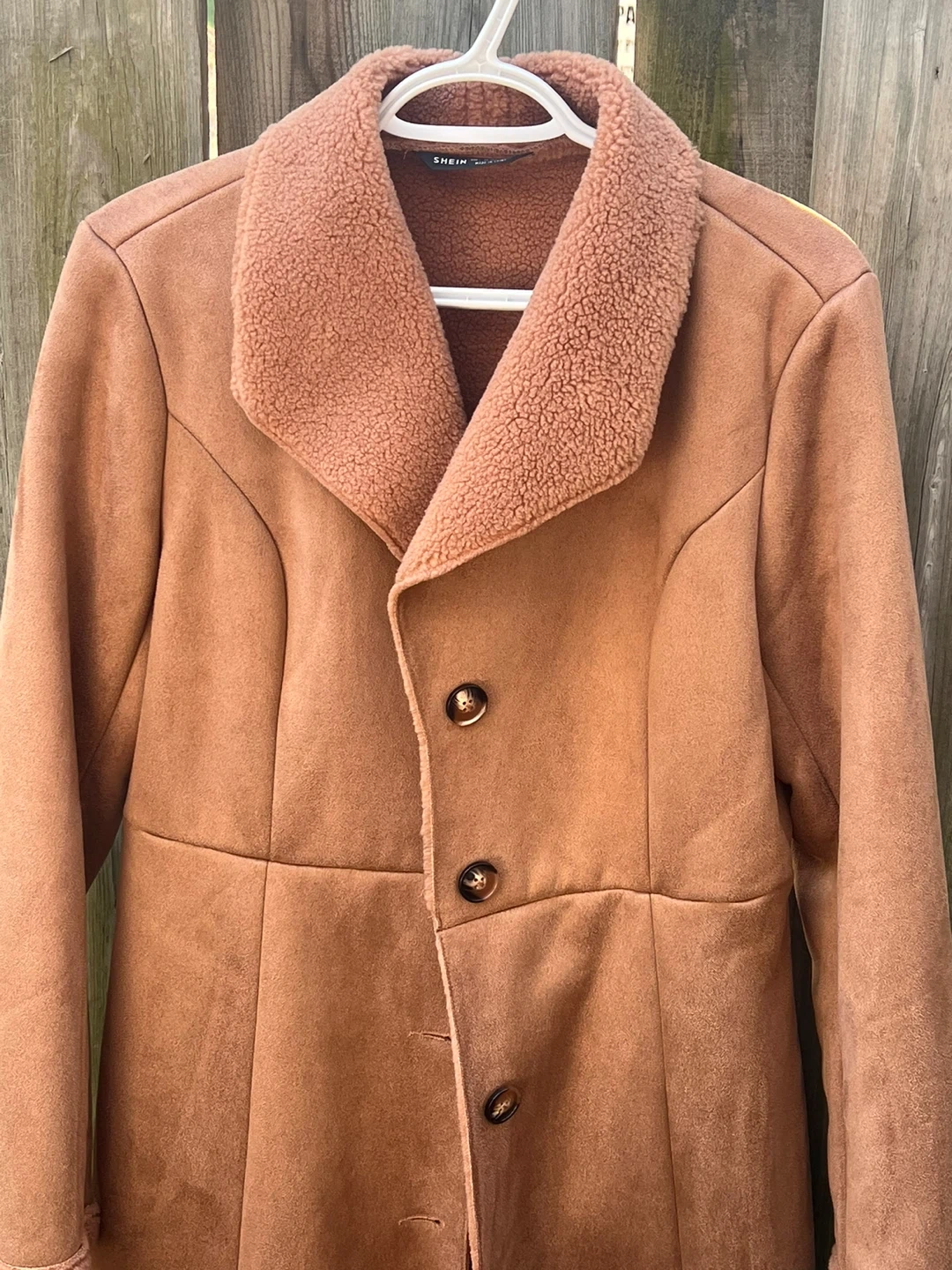 Shein Brown Faux Suede Sherpa Coat - Size L