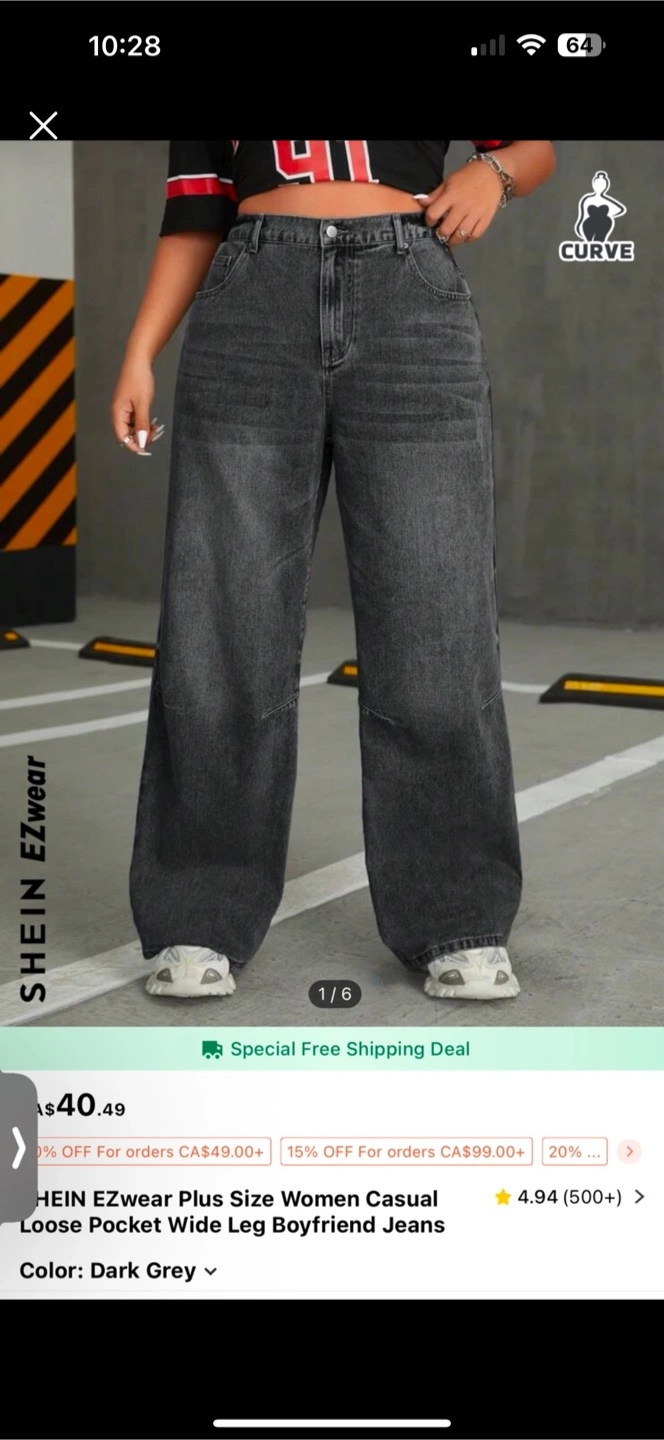 These are a pair of SHEIN EZwear plus size women's casual loose pocket wide leg boyfriend jeans in dark grey. Originally listed for $40.49! Never worn and in Shein packaging