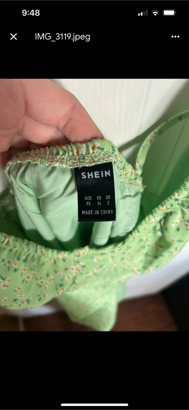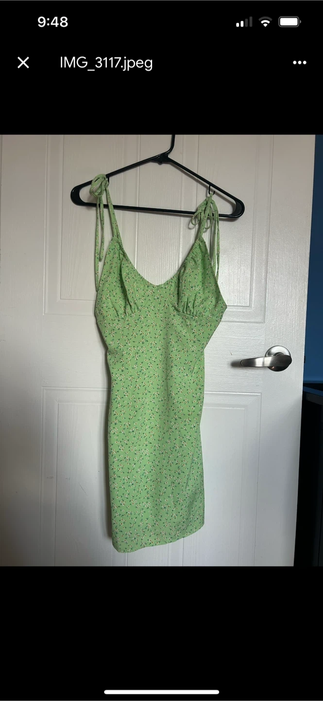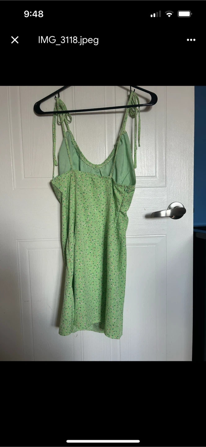 Cute Shein mini dress with a green floral pattern! It's a size XS and has tie straps. Perfect for summer!