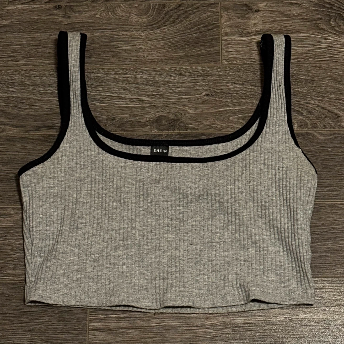 Selling a cute grey ribbed tank top from Shein! It's a versatile piece that can be dressed up or down. Perfect for layering or wearing on its own during warmer weather. Size - small. CASH ONLY PICK UP ONLY