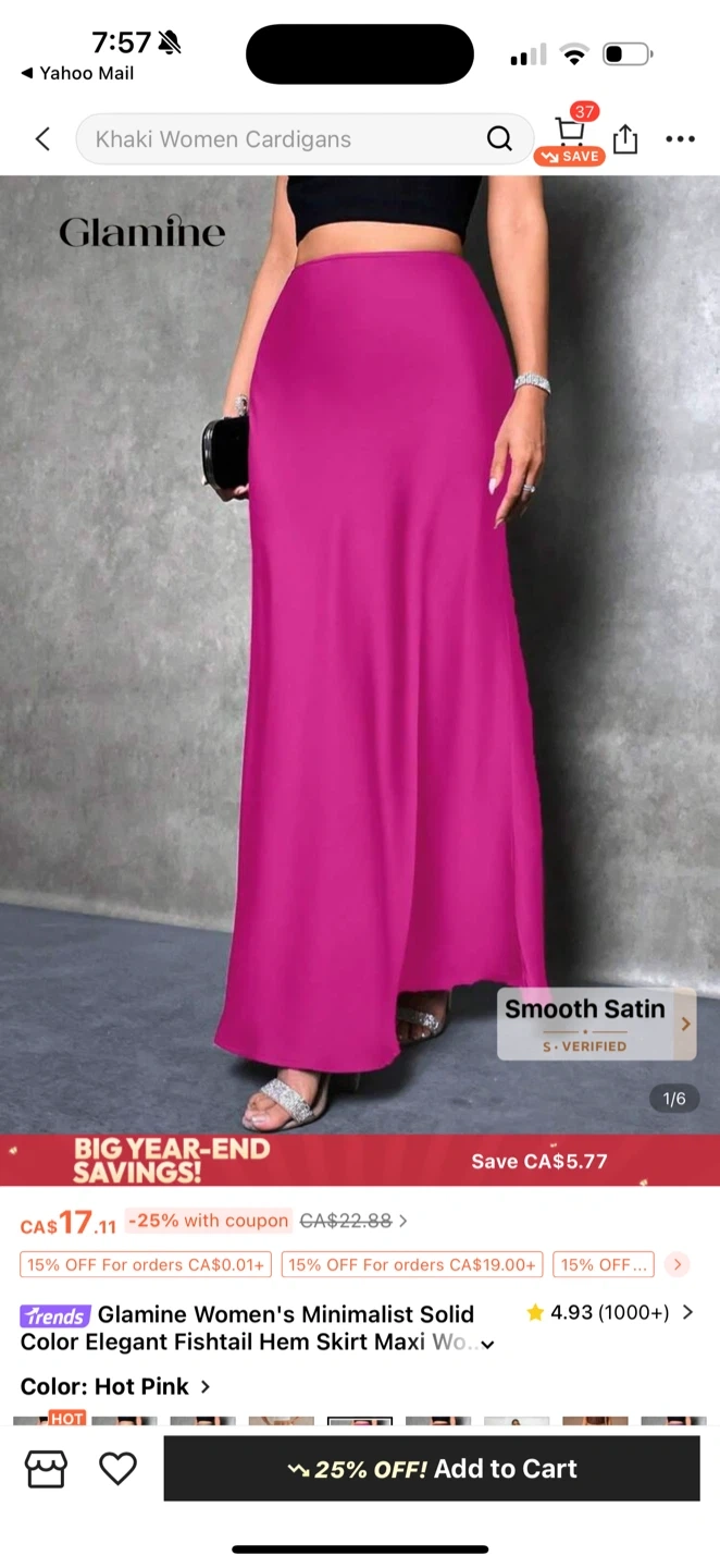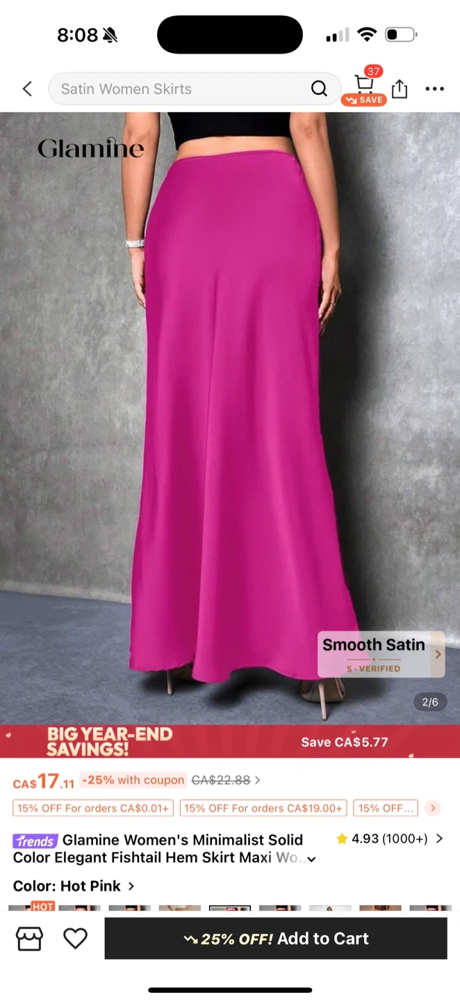 Selling a SHEIN women's minimalist solid colour elegant fishtail hem skirt maxi. It's a hot pink colour and made of smooth satin. A stylish addition to any wardrobe!