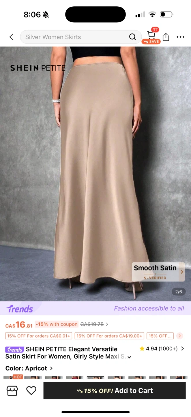 Selling a Shein Petite elegant and versatile satin skirt for women. It's a girly style maxi skirt in apricot colour. It's in great condition and ready for a new home