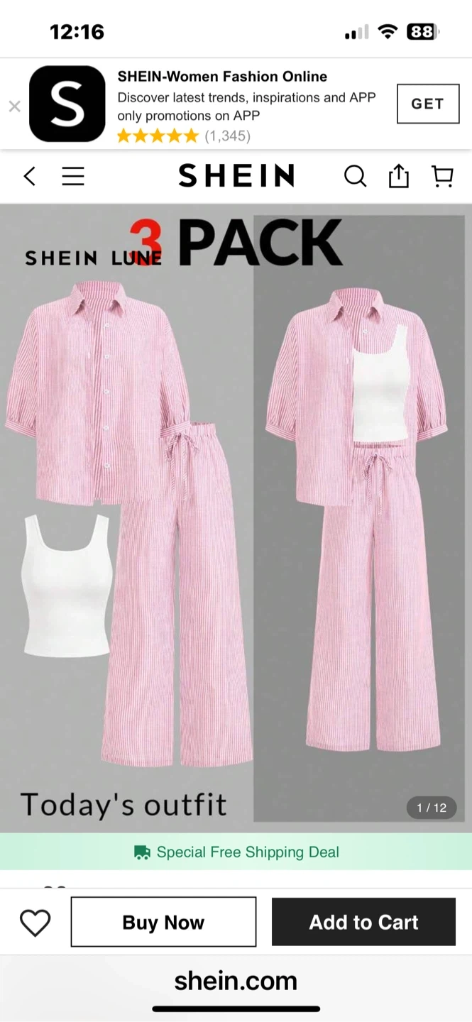 Selling a brand new, never worn SHEIN pink striped three-piece outfit in size L. It includes a top, pants, and a tank top. Perfect for a casual and stylish look!