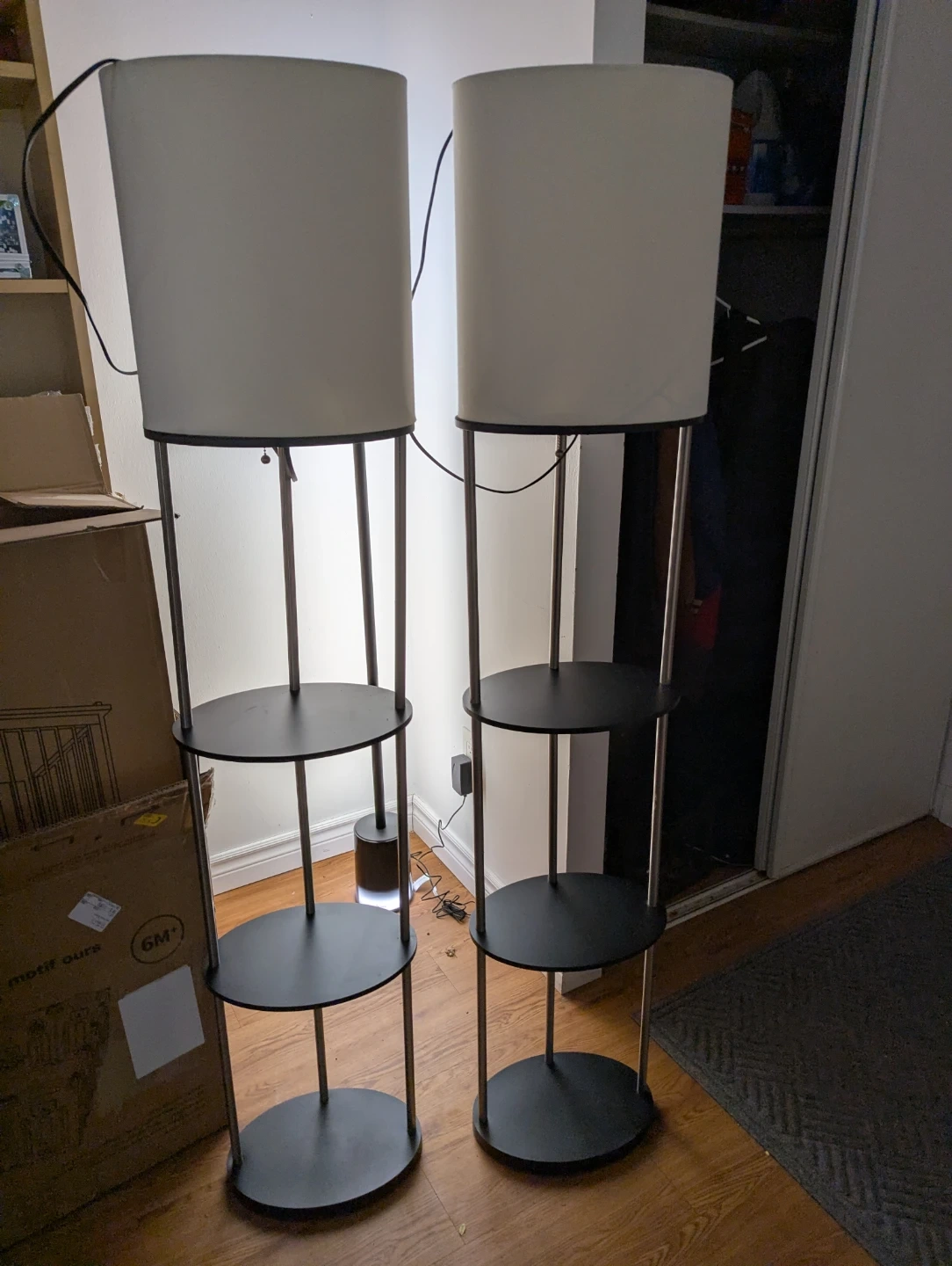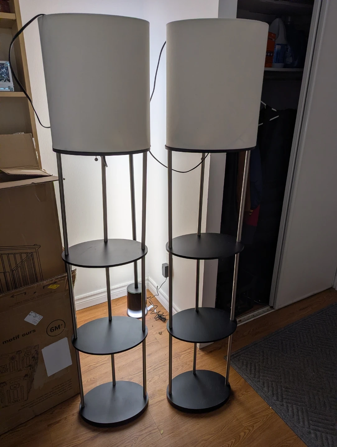 5Selling a set of two floor lamps, each with built-in shelves! They're perfect for adding both light and storage to any room. Great for displaying plants, books, or decorative items. They are in great condition and ready to brighten up your space