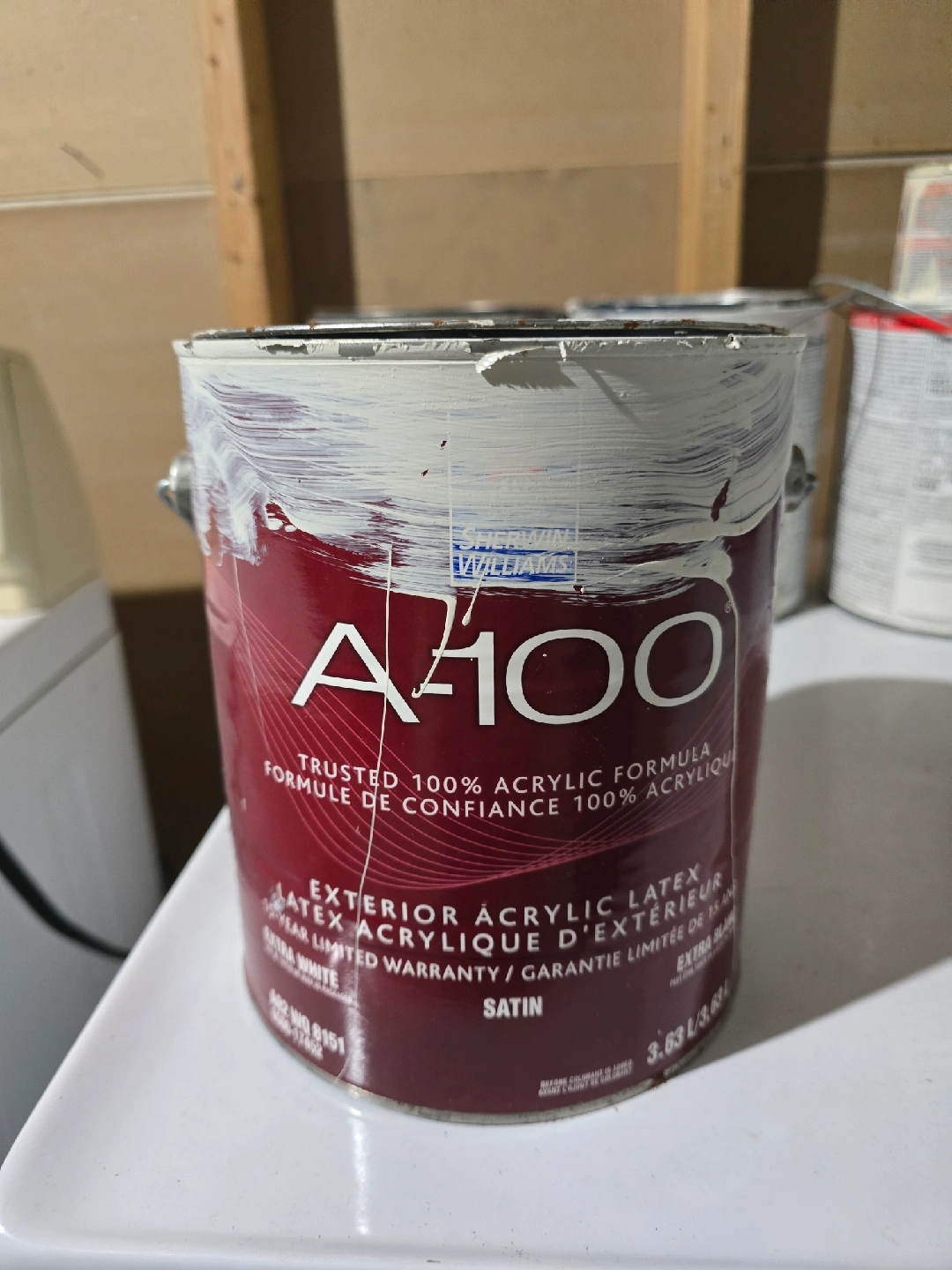 Selling a can of Sherwin-Williams A-100 Exterior Acrylic Latex paint in satin finish. The colour is 7011 Natural Choice. It's a one-gallon can but less then half full. Perfect for your exterior painting needs!
