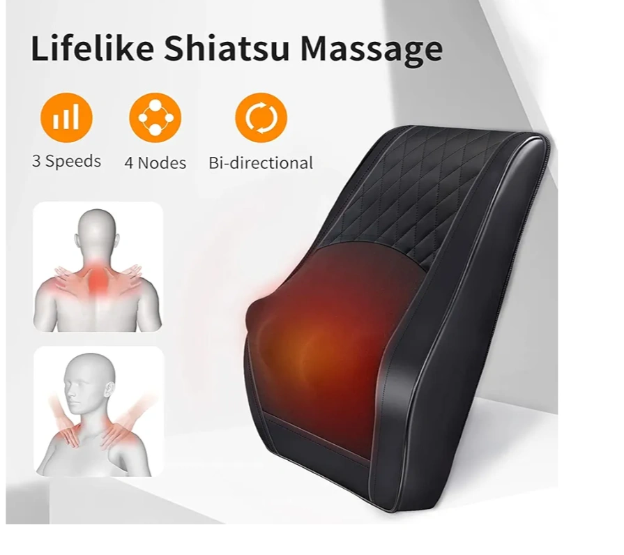 60Looking to relieve some tension? This shiatsu back massager is perfect for targeting those sore spots! It features: - Lifelike shiatsu massage with 3 speeds and 4 nodes - Bi-directional massage - Remote functions for power, direction, intensity (3 levels), mode (3 modes), and heating (2 levels) It's designed for multipurpose use, so you can use it on your neck, abdomen, waist, arm, thigh, or calf