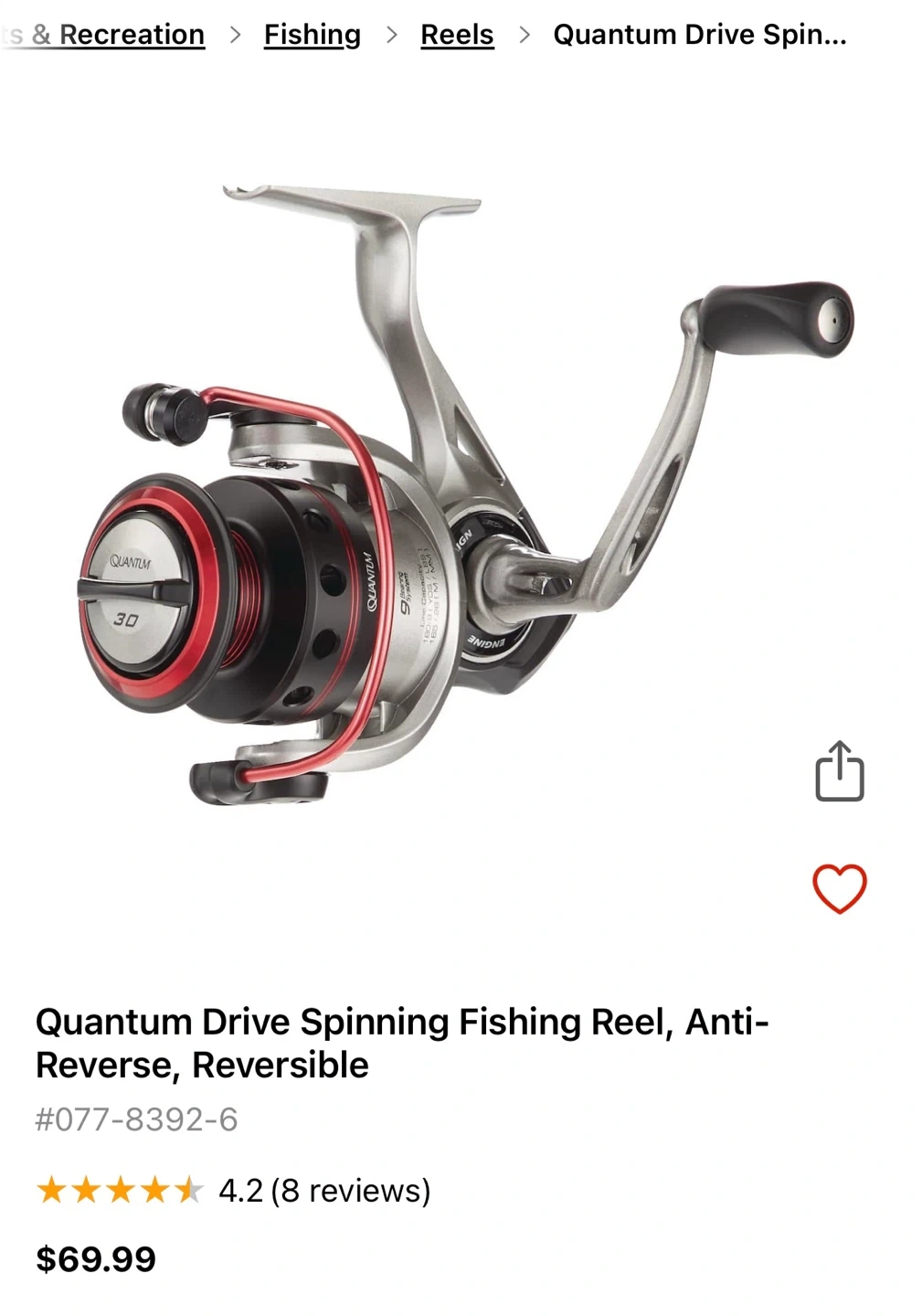 Fishing Rod + Reel Shimano FX Spinning Rod • Length: 6’6” • Line weight: 6–15 lb • Lure weight: 1/4–3/4 oz Quantum Drive 30 Spinning Reel • Smooth performance • Anti-reverse feature • Reversible handle (left or right retrieve) This is a complete setup ready for the water — strong rod and smooth reel to land your fish. Address: London, Ontario Cash and Pickup