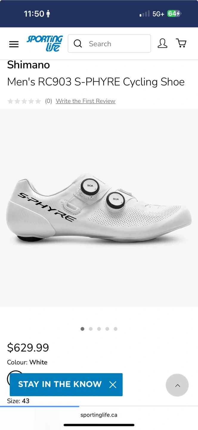 0Selling a pair of Shimano RC903 S-PHYRE cycling shoes in white. They're in great condition and ready for your next ride! The box indicates a size of US 7, EUR 40, and CM 25.2. Originally bought for $649.99.
