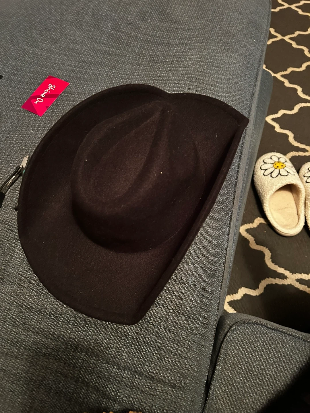 1000+stylish black cowboy hat from Shine On! It's in great shape and ready for a new home. Perfect for adding a bit of flair to any outfit! #freecycle 🎀Bundle items for discounts when purchasing more then one item🎀