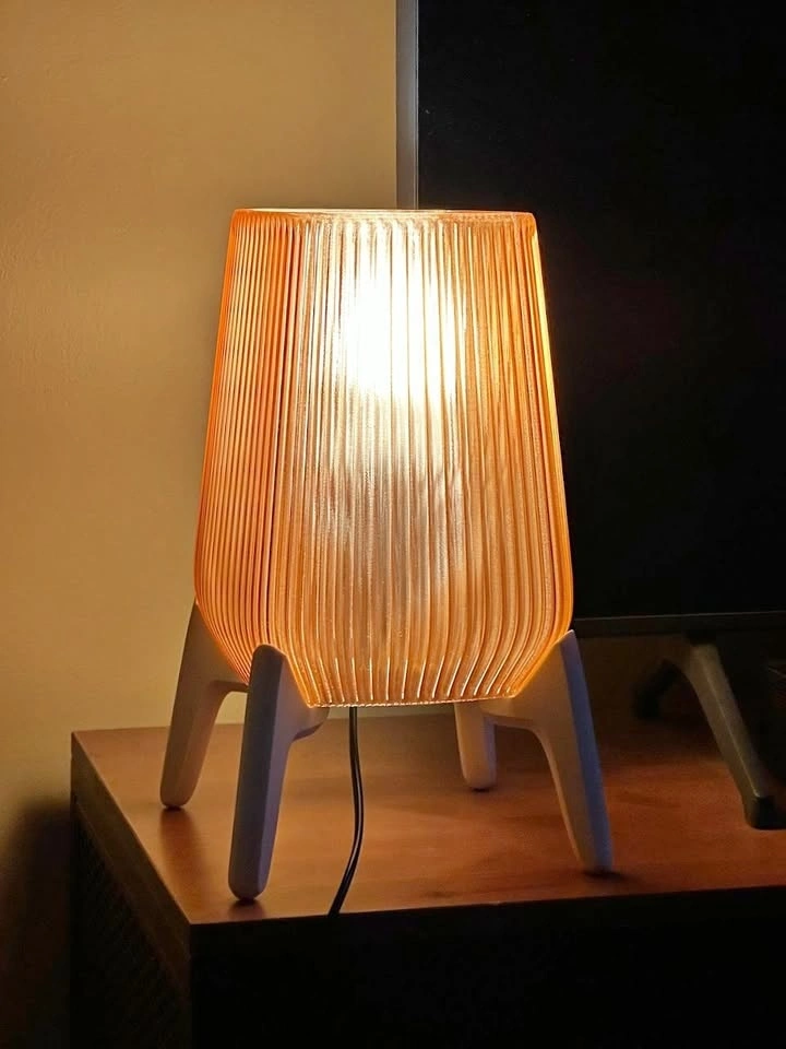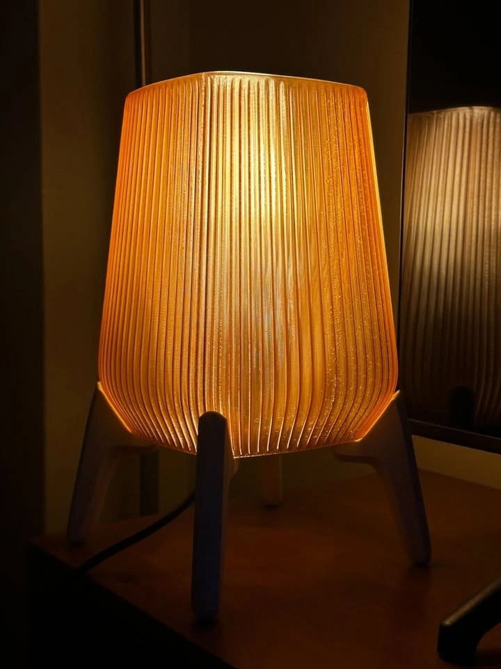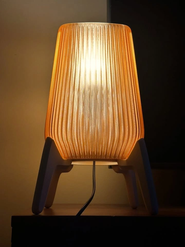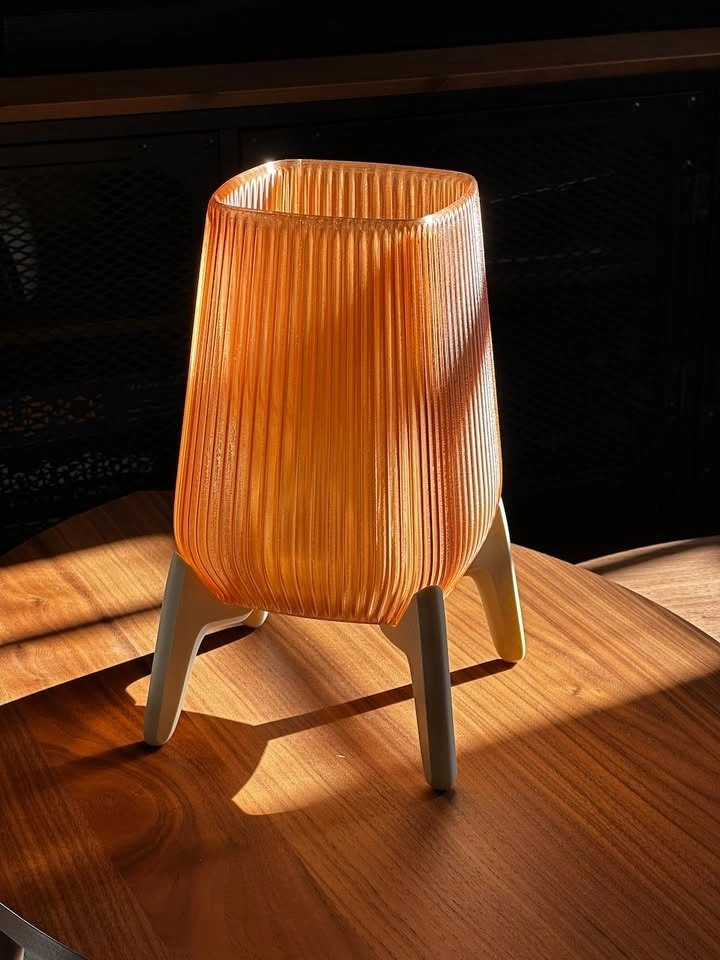 This piece is a nod to mid-century modern design with a warm, architectural feel. It features a light brown fluted shade that puts off a cozy, honey-like amber glow, perfect for a bedside table or as a mood light in a living room corner.