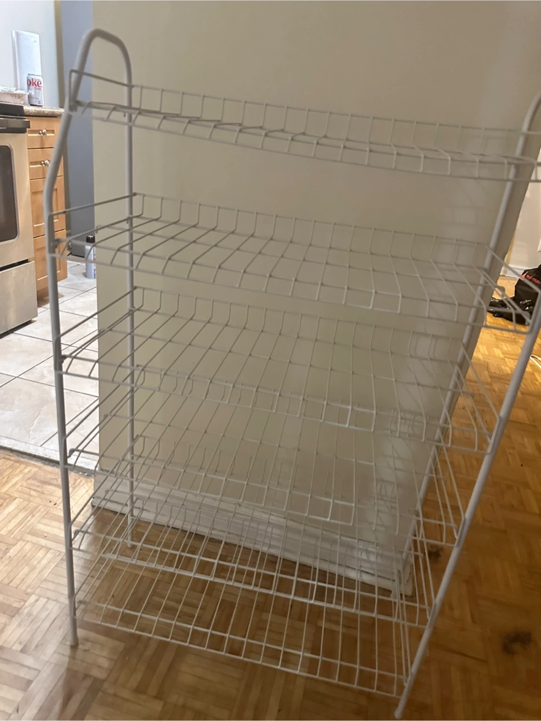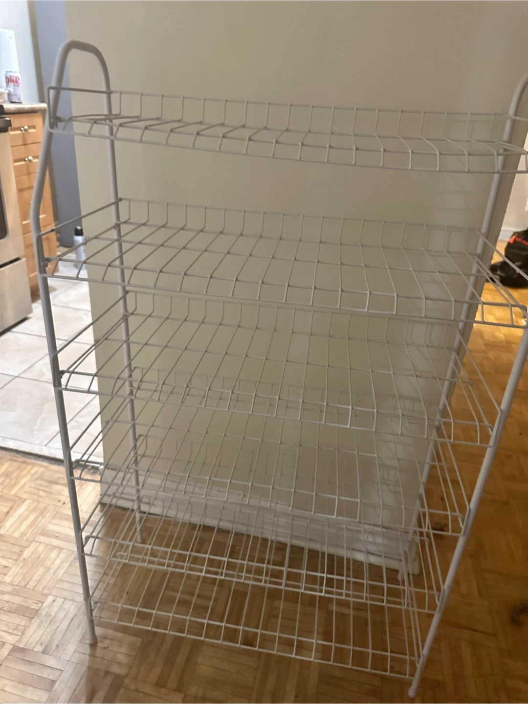 64Selling a handy white wire shelf rack! It's perfect for organizing shoes.