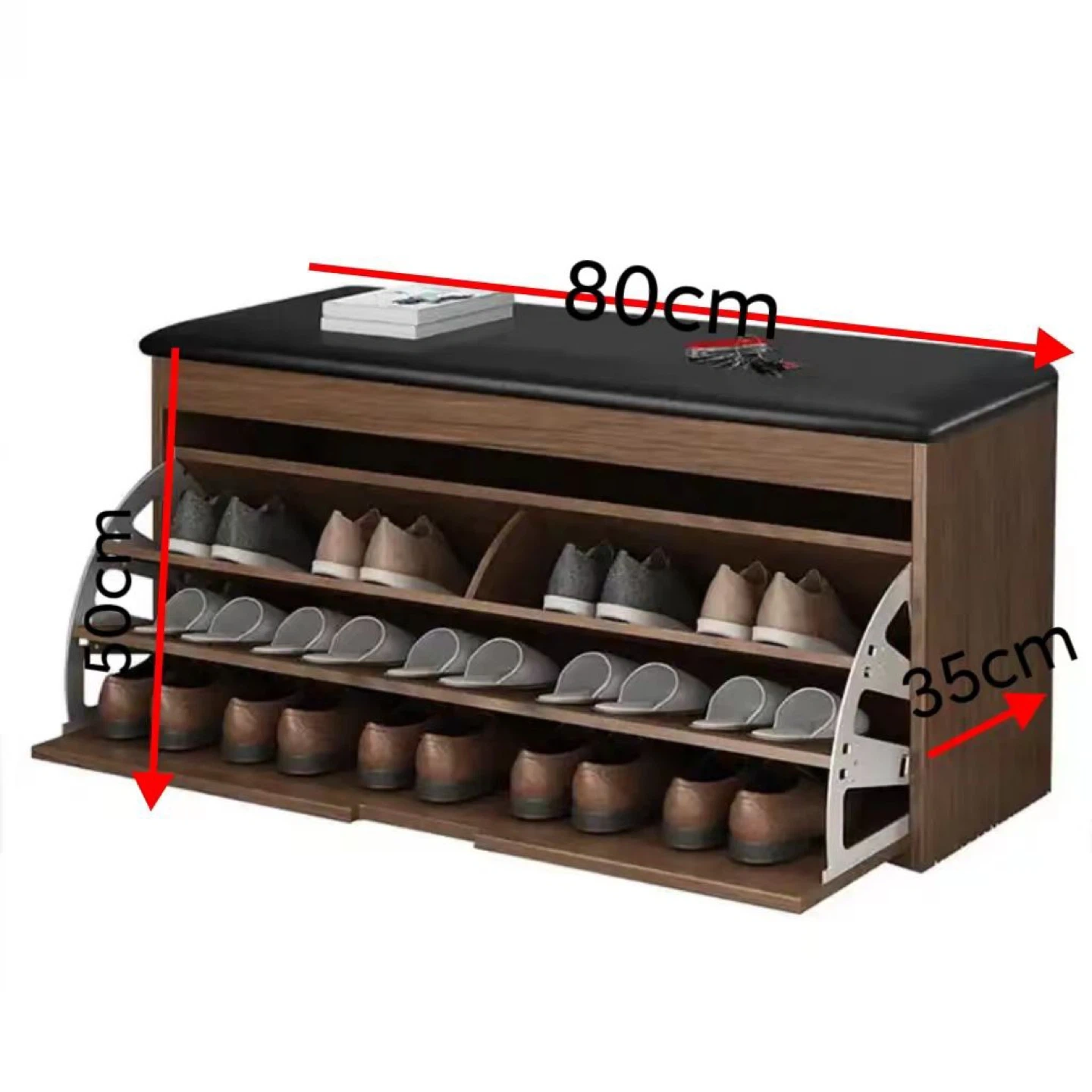 10This shoe storage bench is great for keeping your entryway tidy! It features a comfortable black cushion on top and a pull-down drawer for easy access to your shoes. The bench is brown and measures approximately 80cm x 40cm x 35cm