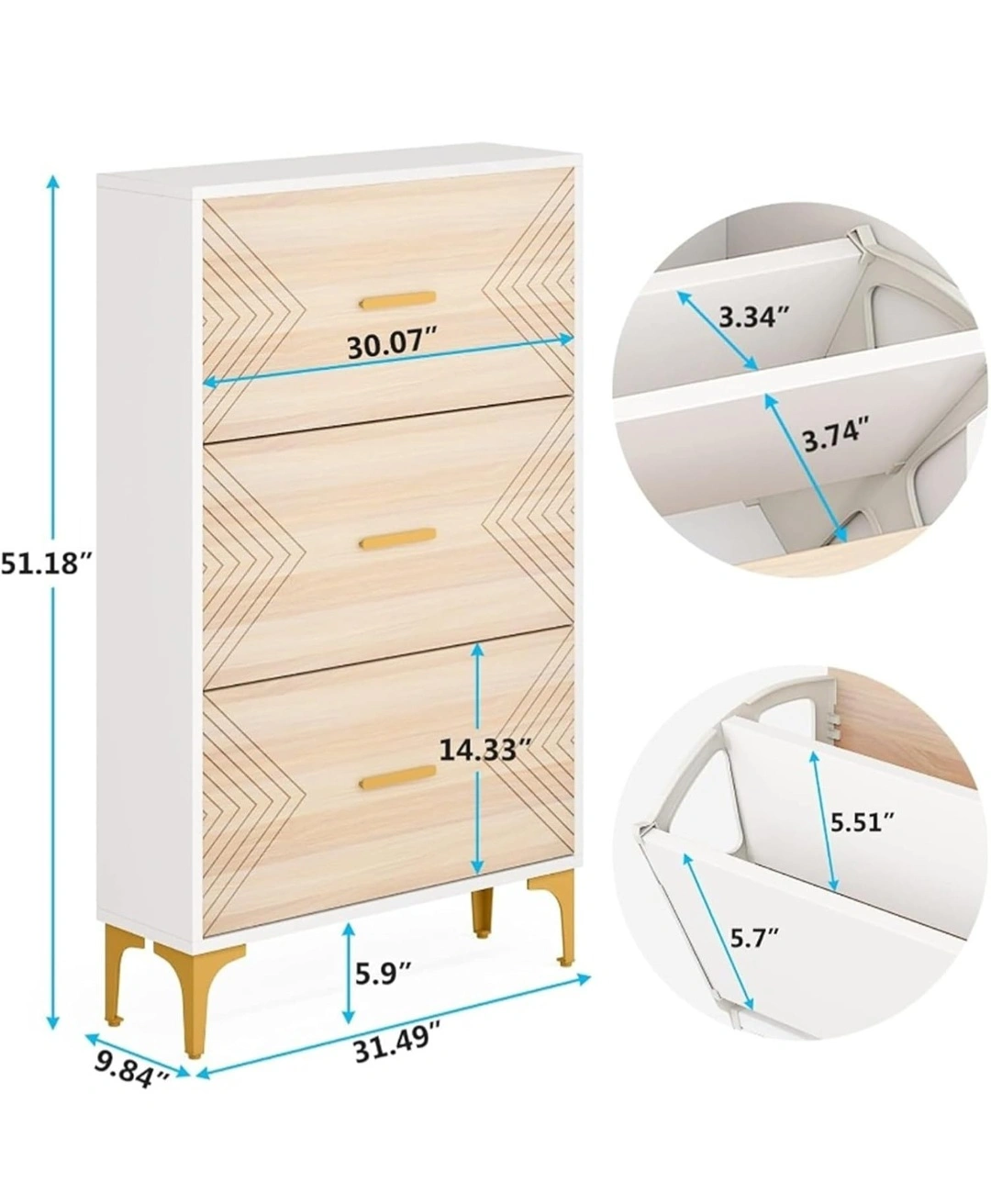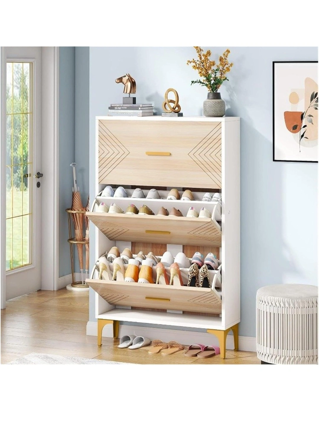 Shoe Storage Cabinet Organizer with 3 flip drawers