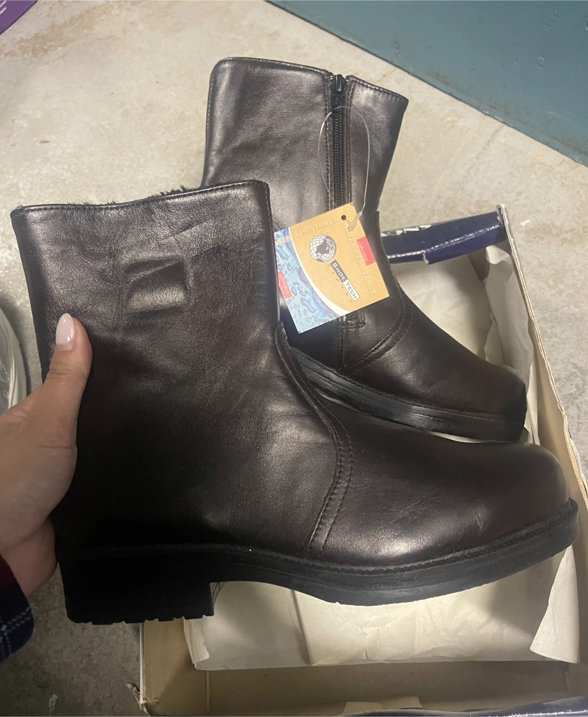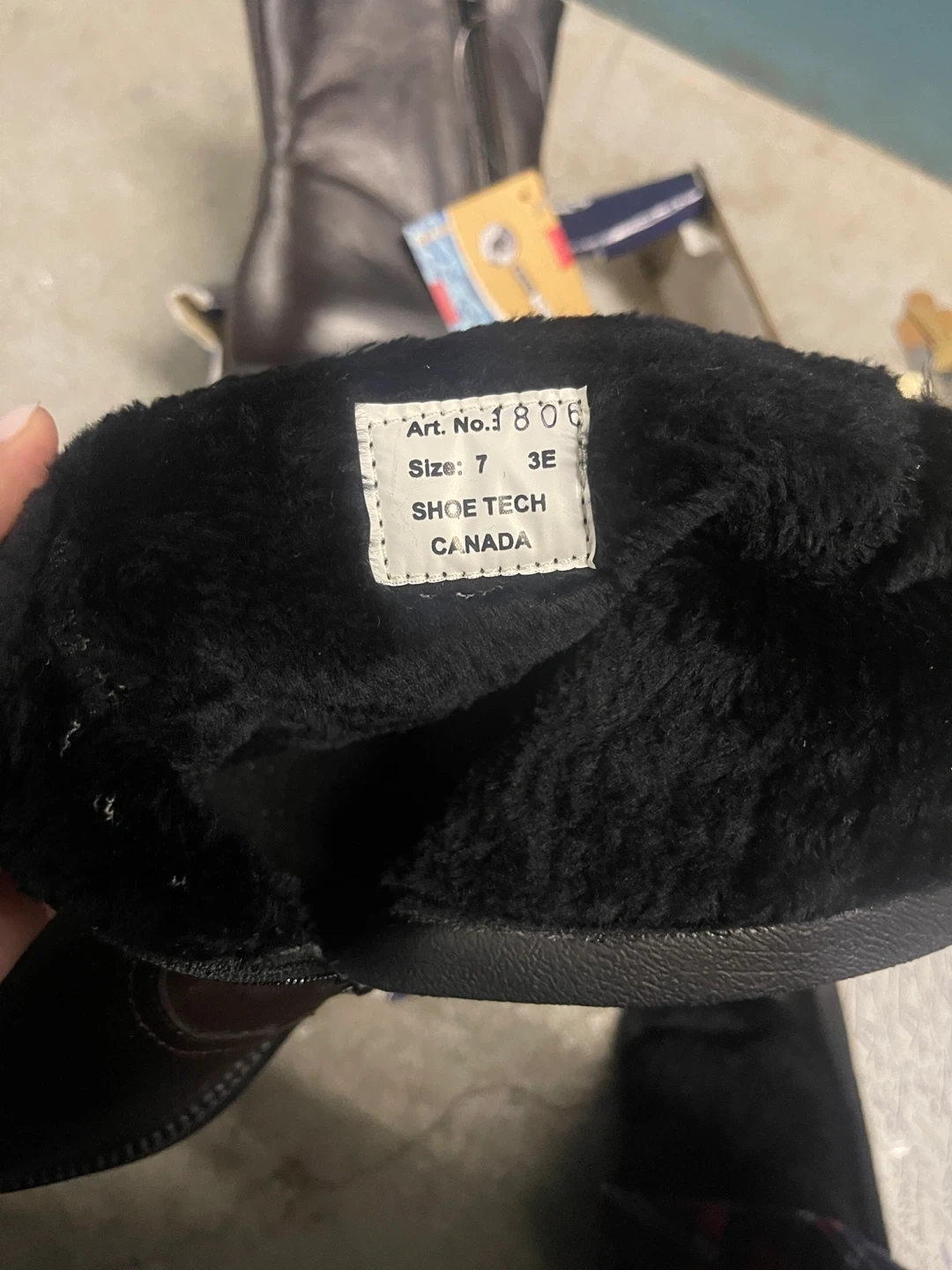 326These are a pair of brand new Shoe Tech Canada leather boots in size 7! They are a dark brown colour and come with the original box. The boots feature a water-resistant design, perfect for Canadian weather