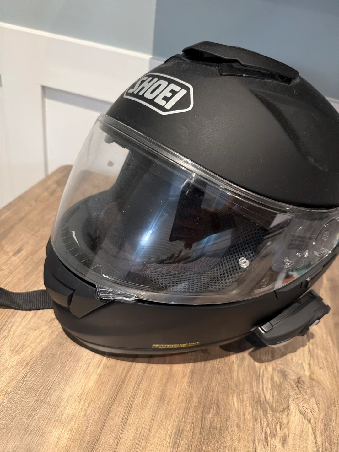 60Selling a Shoei GT-Air helmet $1100 plus taxes new in size large. It's in great condition and ready for your next ride! Comes with Sena Bluetooth $500 value. Selling as a combo only No scratches like new used maybe 8-10 times.