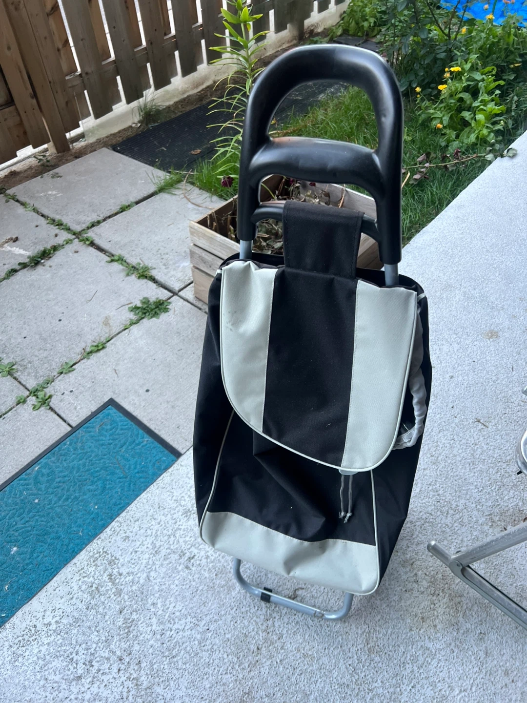 117Looking to sell my shopping trolley bag cart! It's in great condition and perfect for groceries or carrying items. It's black and white. It has wheels and a handle for easy transport