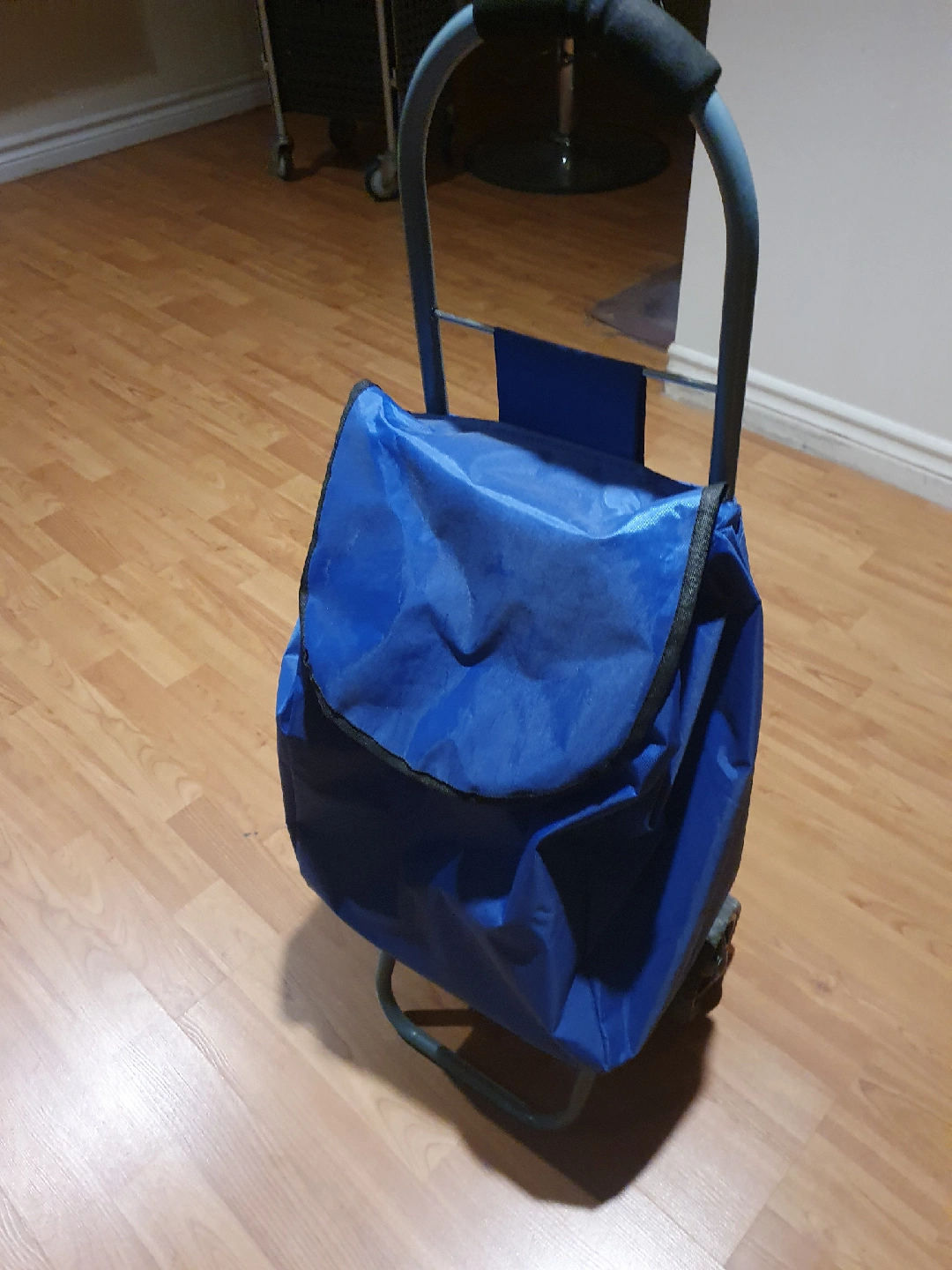 Selling a blue shopping trolley cart. It's in great shape and ready to help with your grocery runs or trips to the market. It's lightweight and easy to maneuver, making shopping a breeze!