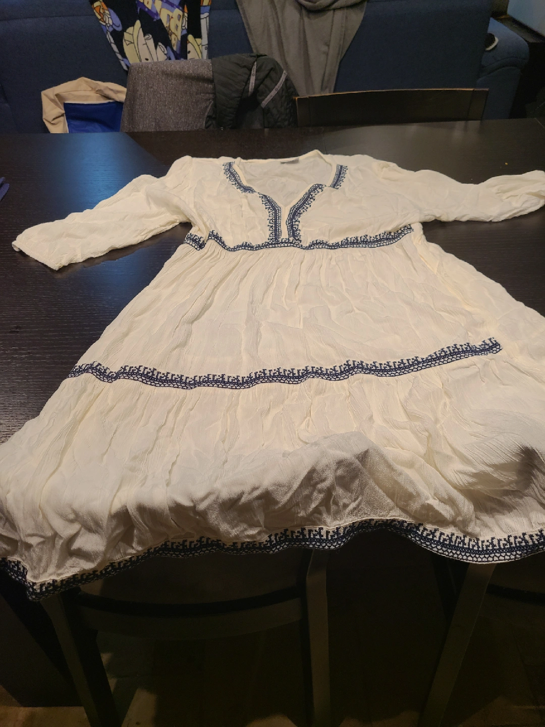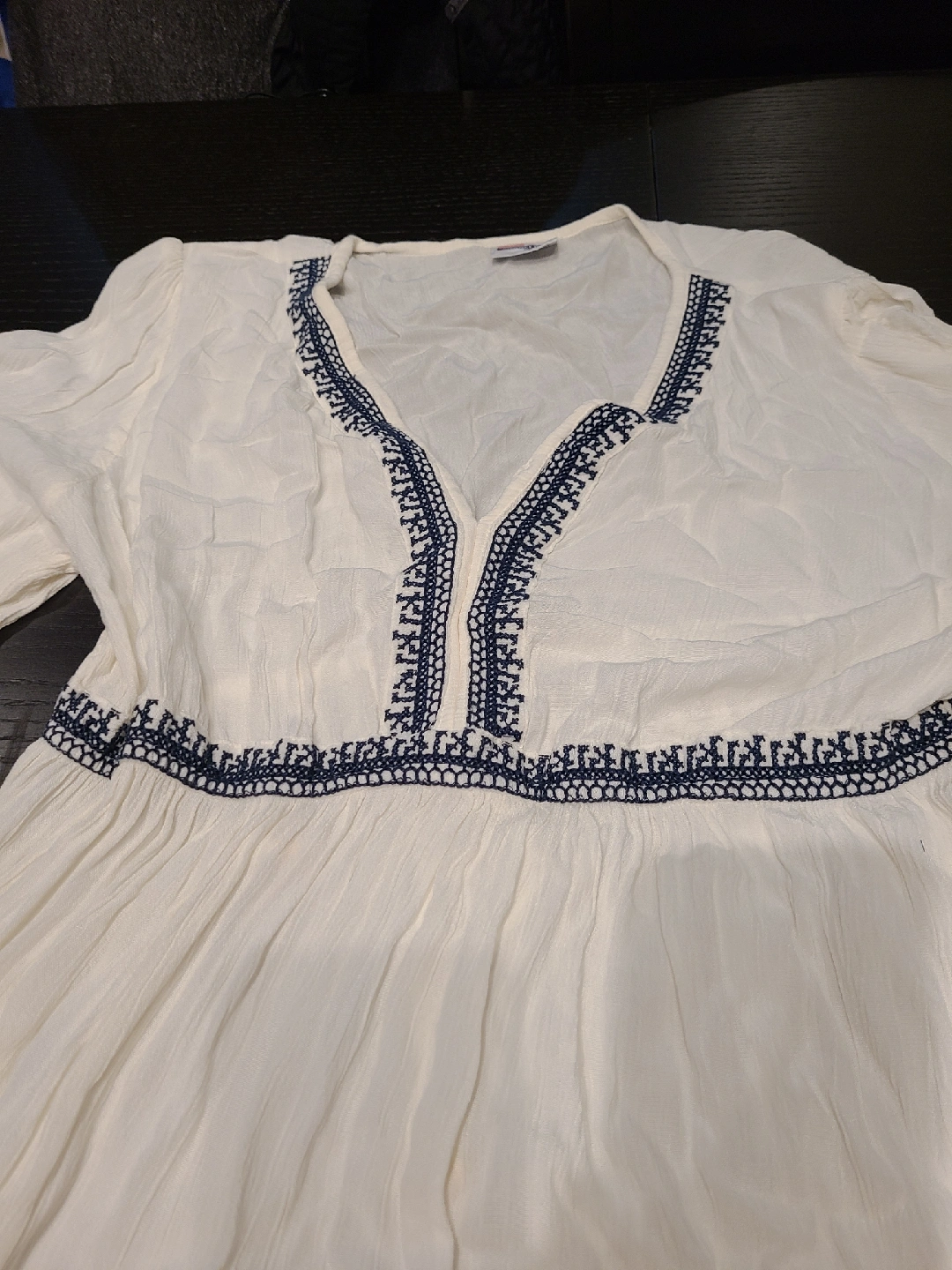 10Selling a lovely white dress from Shoreline in size 3XL! It's in great condition and has a beautiful, flowy design with intricate detailing. Perfect for a casual day out.
