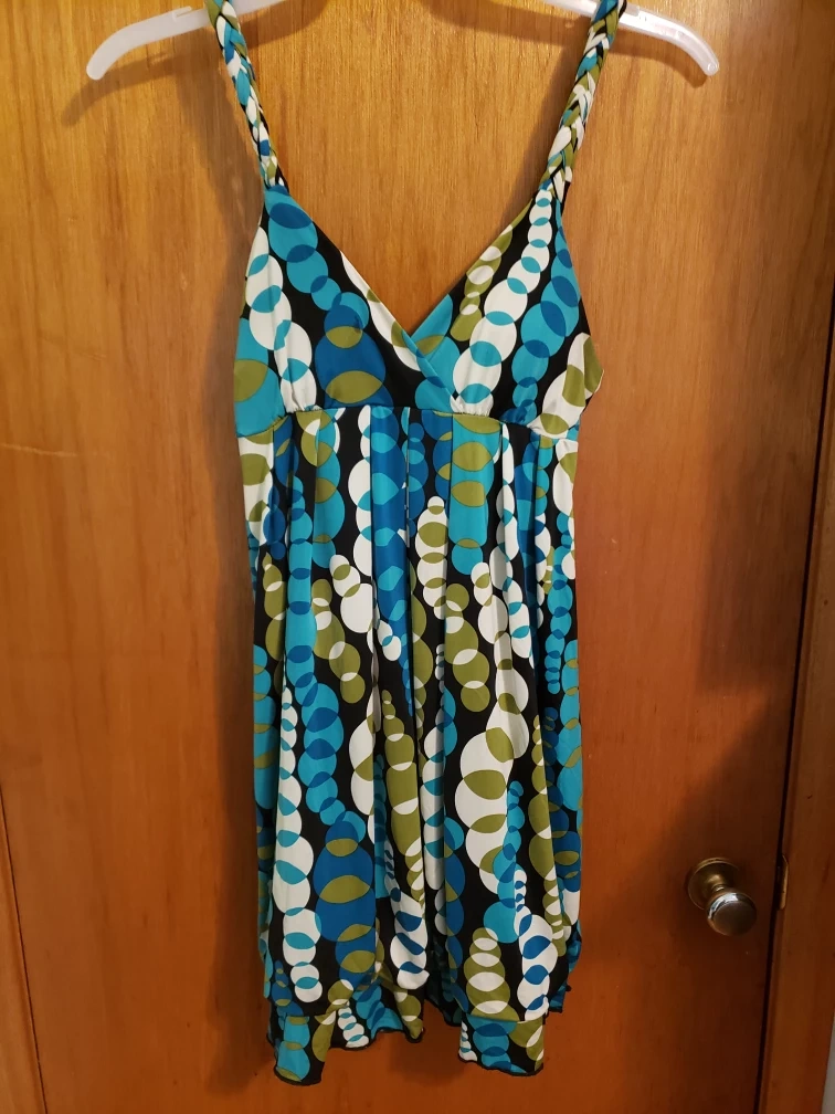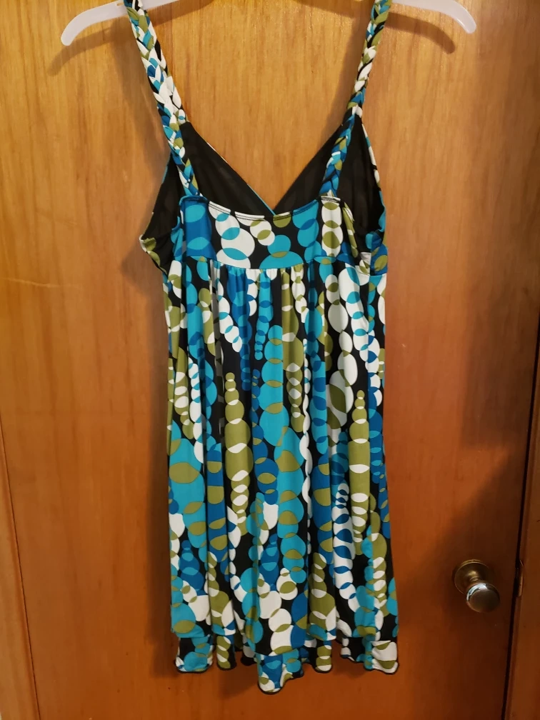 Green/blue, braided strap - "Co-Me COMO" short summer dress. size Med/LG