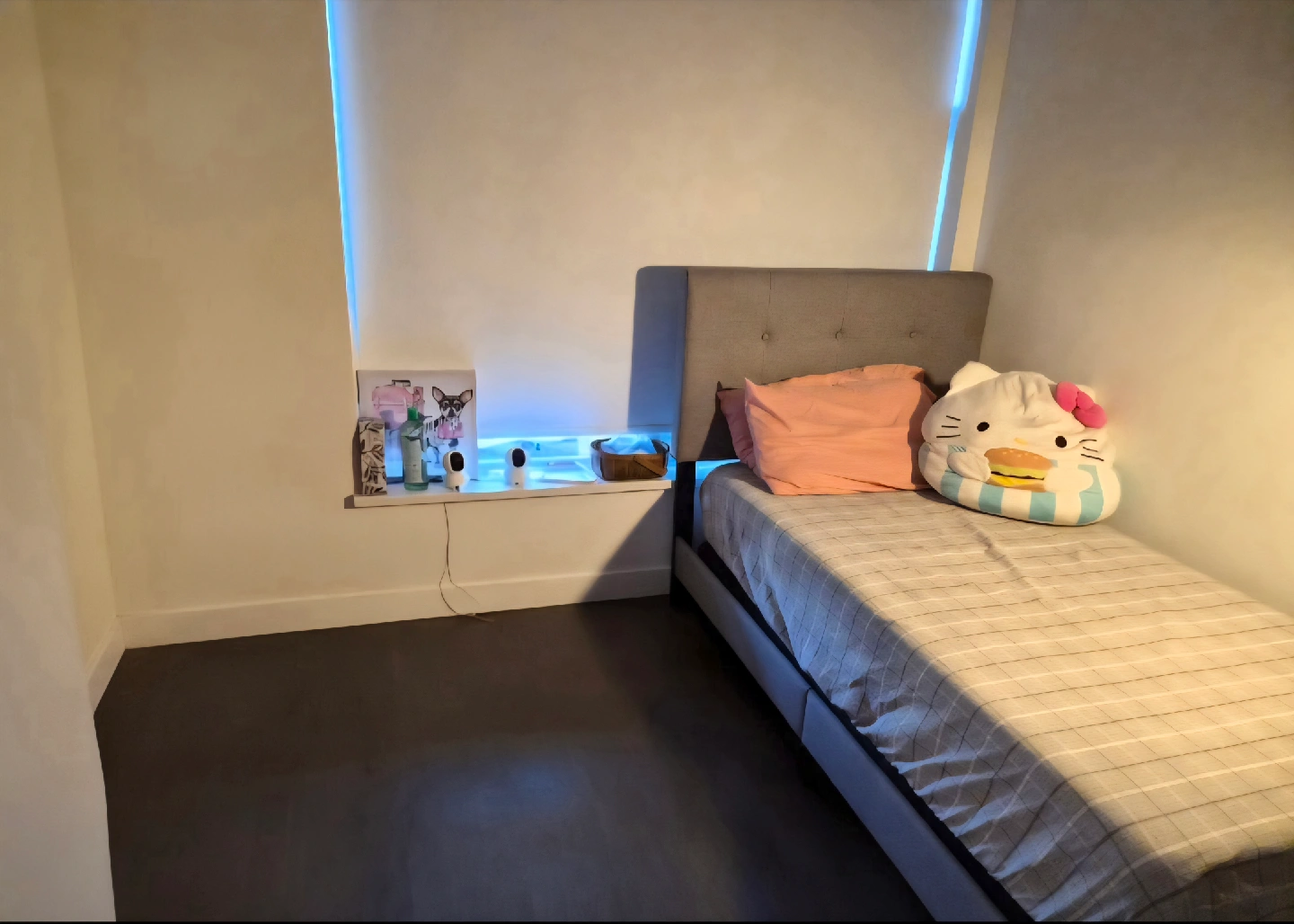 119near king George station 2bed 1bath condo you can use 2nd bedroom now only set up twin bed as pic but can be set up desk and bedding if you need shared bathroom with me I'm a woman so female only building has good amenities including swimming pool I have very cute small dog. so only pet friendly person available staying length is flexible from 10/24 daily, weekly. monthly can be discussed daily price $40 weekly price $270 with refundable key deposit plz note : absolutely no smoking, no drug at home. it's only strict rule.
