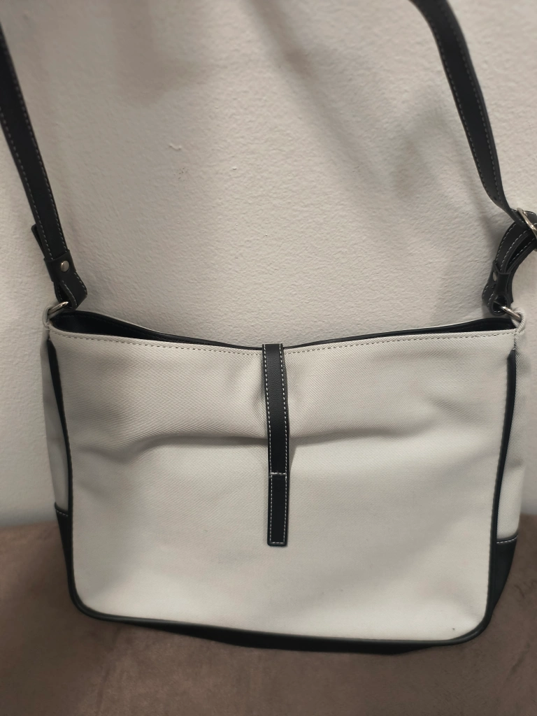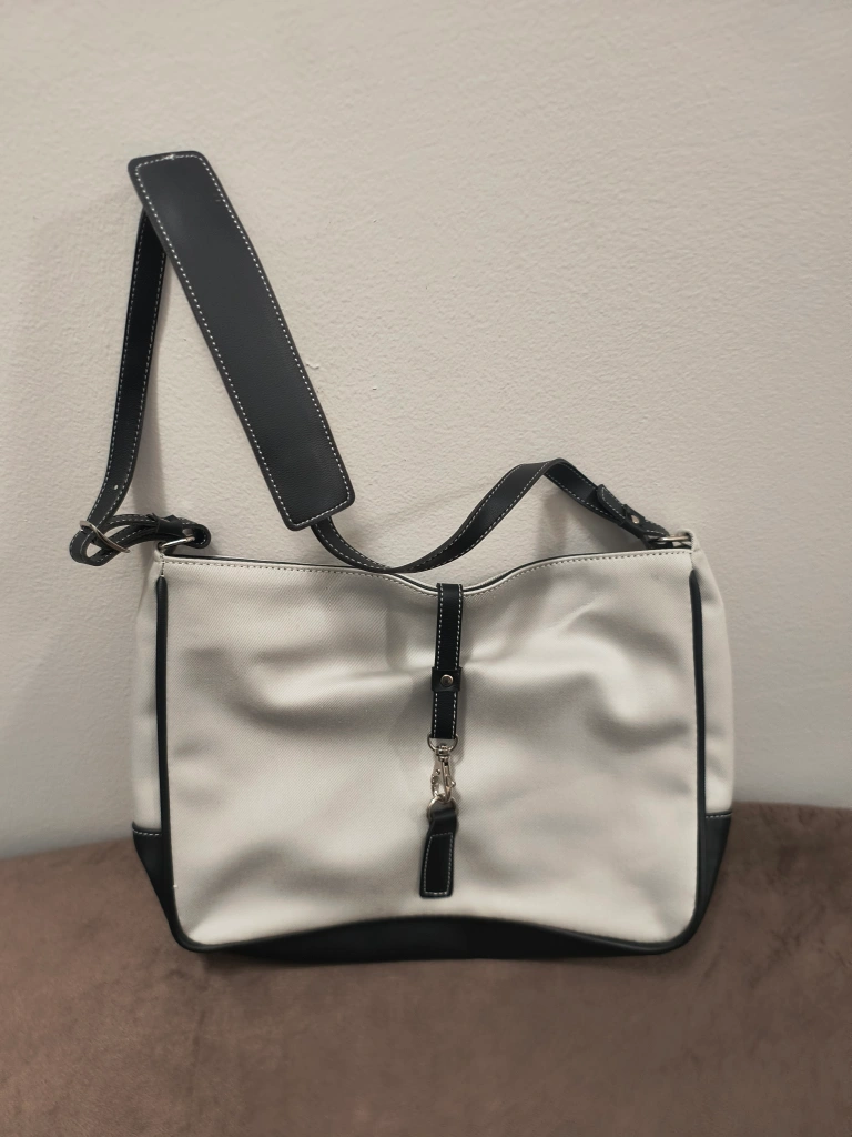 A stylish shoulder bag in a classic white and black colour combination. In good condition and has a sleek design, perfect for everyday use.