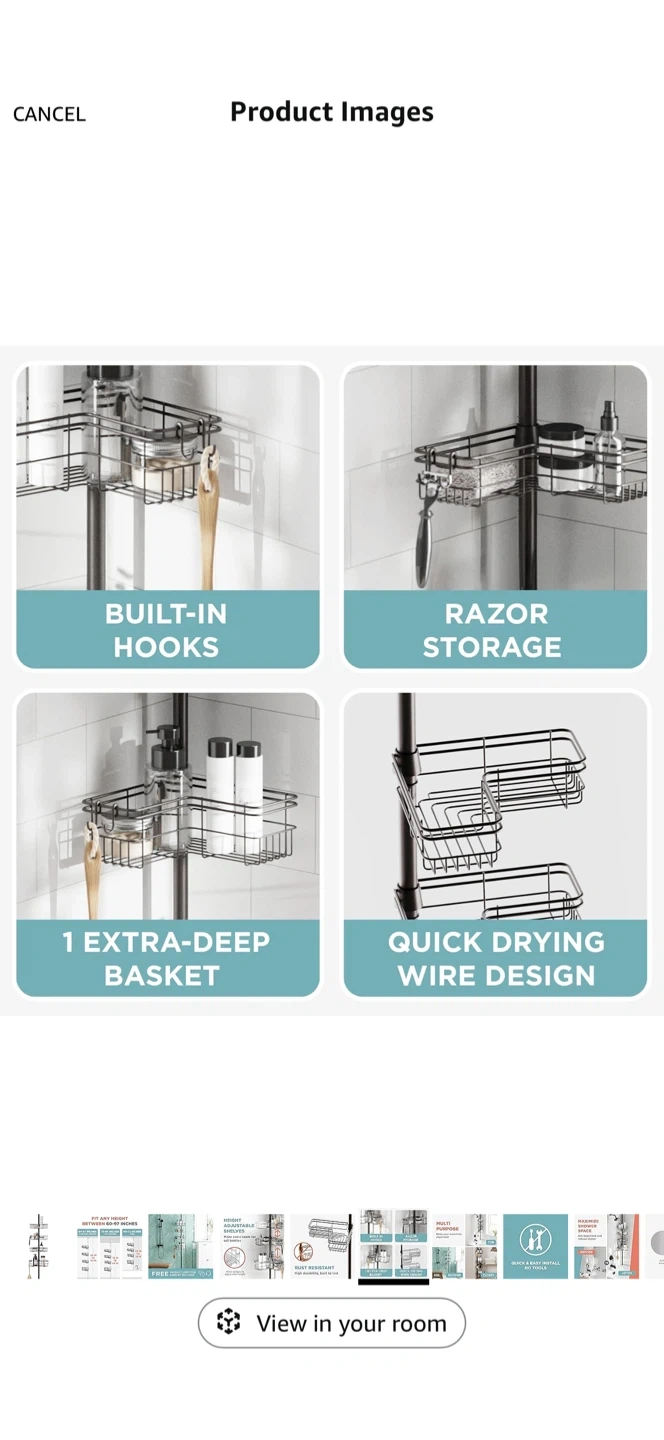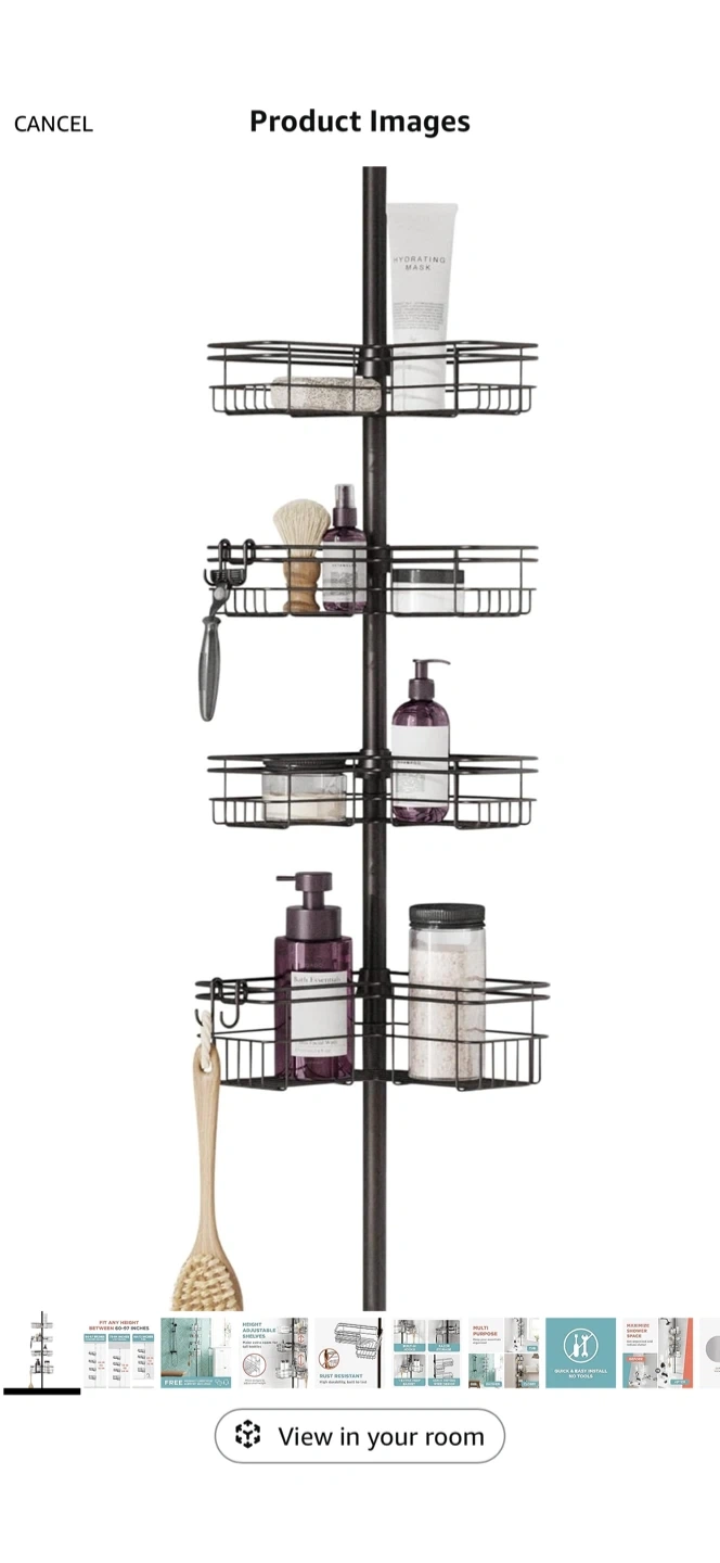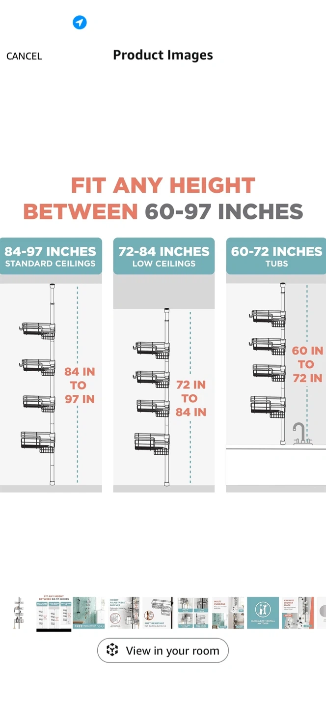 Keep your shower essentials organized with this adjustable tension pole shower caddy! It fits any height between 60-97 inches. Features include built-in hooks, razor storage, an extra-deep basket, and a quick-drying wire design. Perfect for standard ceilings, low ceilings, or tubs Listed on amazon for $74