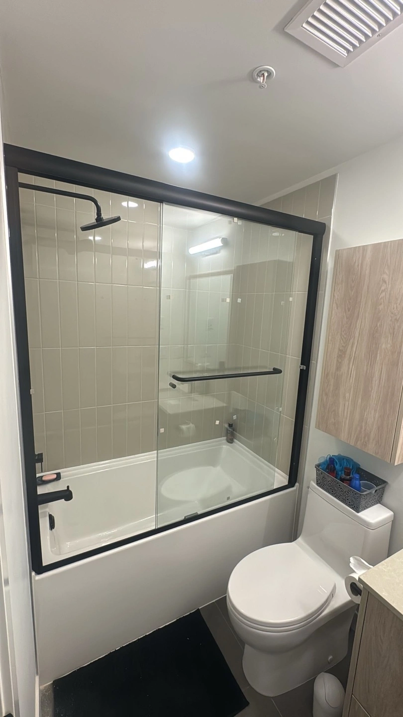 10Selling a shower door with a sleek black frame. It's in new condition and ready to be installed in your bathroom. The glass is clear and the frame is sturdy.