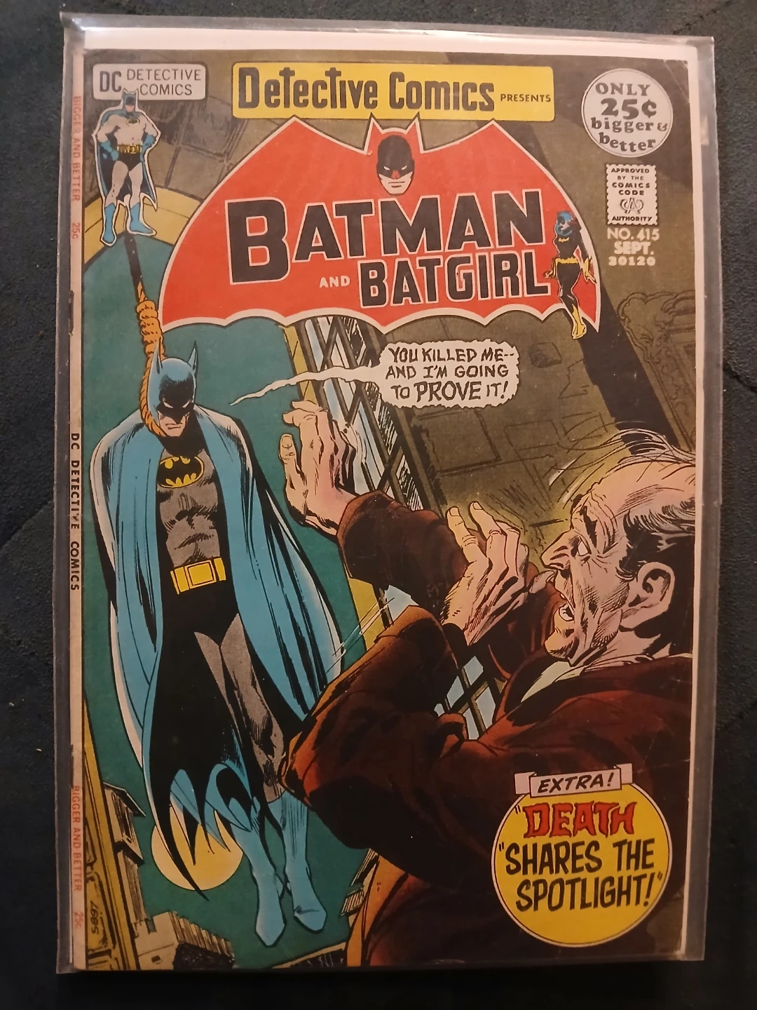 This Detective Comics issue features Batman and Batgirl. It's from September 1971. The cover price was 25 cents. Neal Adam's Cover.