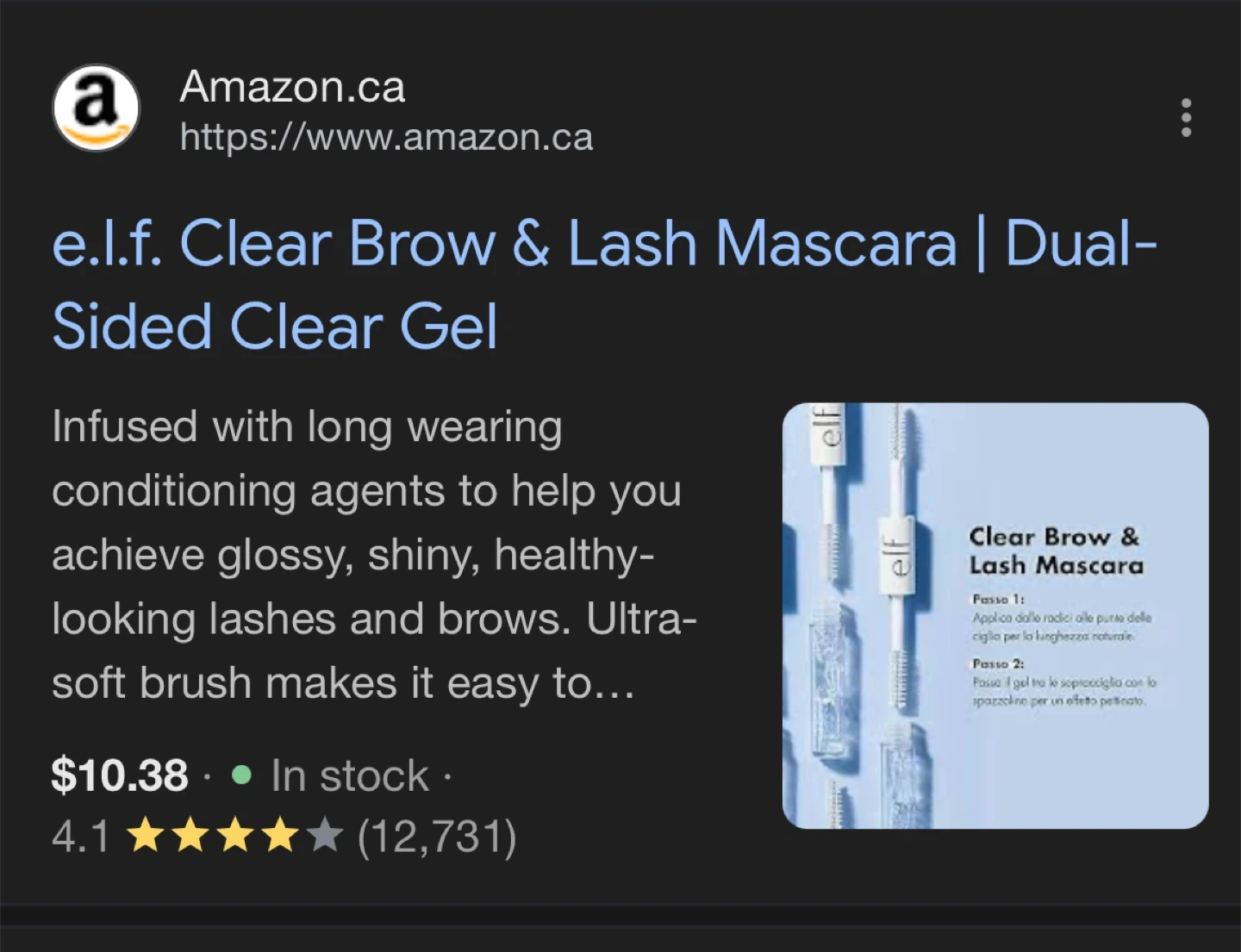 This is e.l.f.'s Clear Brow & Lash Mascara. It's a dual-sided clear gel designed for lashes and brows. The ultra-soft brush makes application easy!