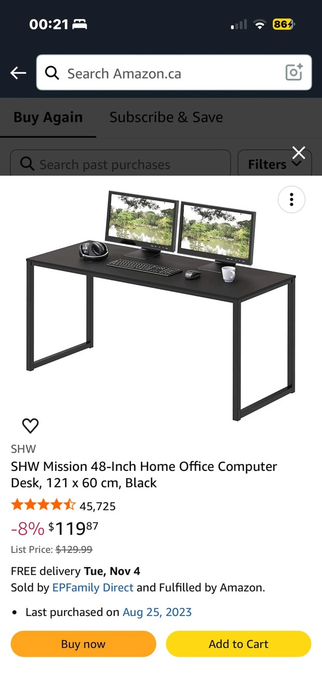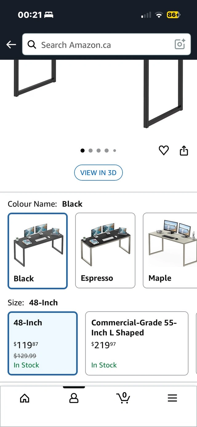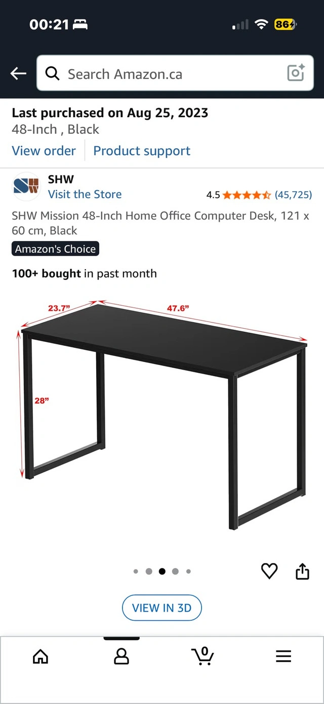10This SHW computer desk features a 48-inch black top and a sturdy metal frame, ideal for a home office or study space. This is a used desk, but it's in good condition, ready to support your computer and accessories. Specifications: * Dimensions: 48 inches (121 cm) x 60 cm * Colour: Black This sleek desk is waiting to become the command center of your digital world. Don't miss out—if the ad is up, it's available!