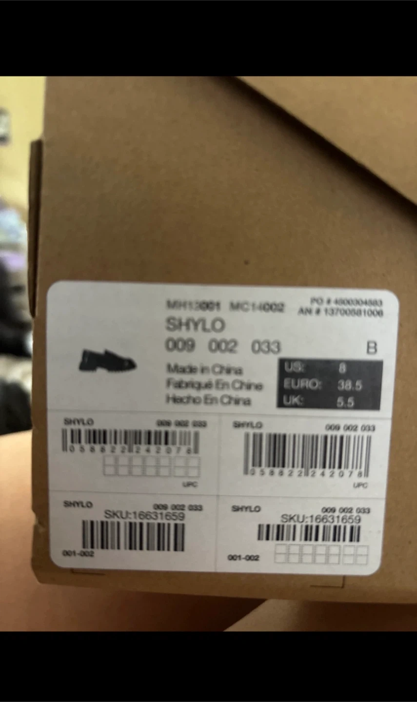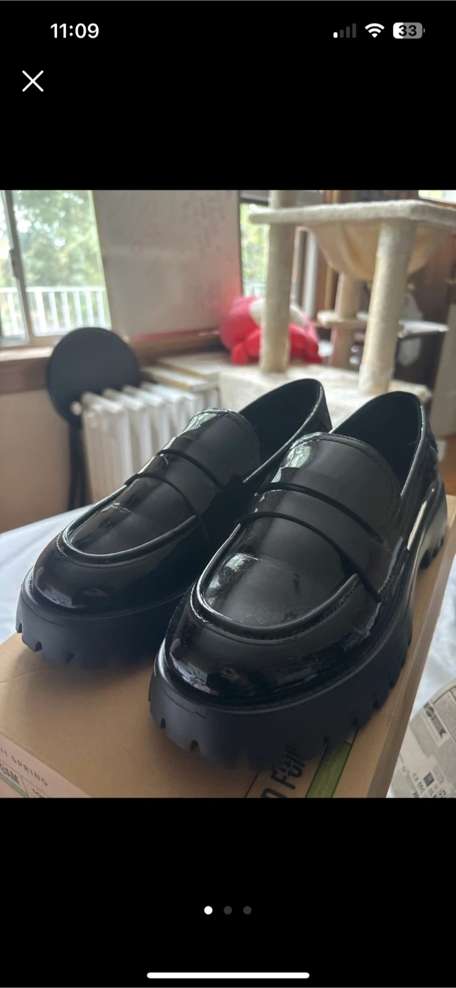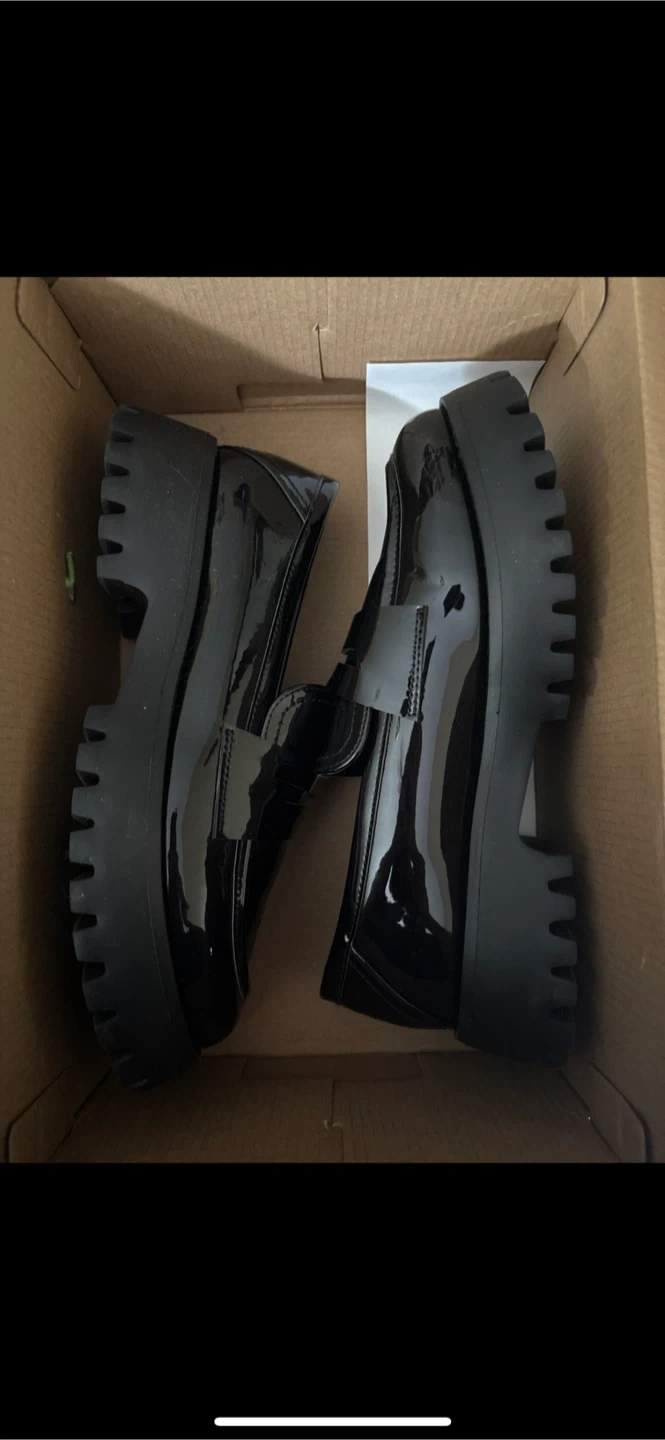 202Selling a pair of Shylo loafers in black patent leather! They're a US size 8. These stylish shoes come with their original box and are in great condition. Perfect for adding a bit of edge to any outfit!